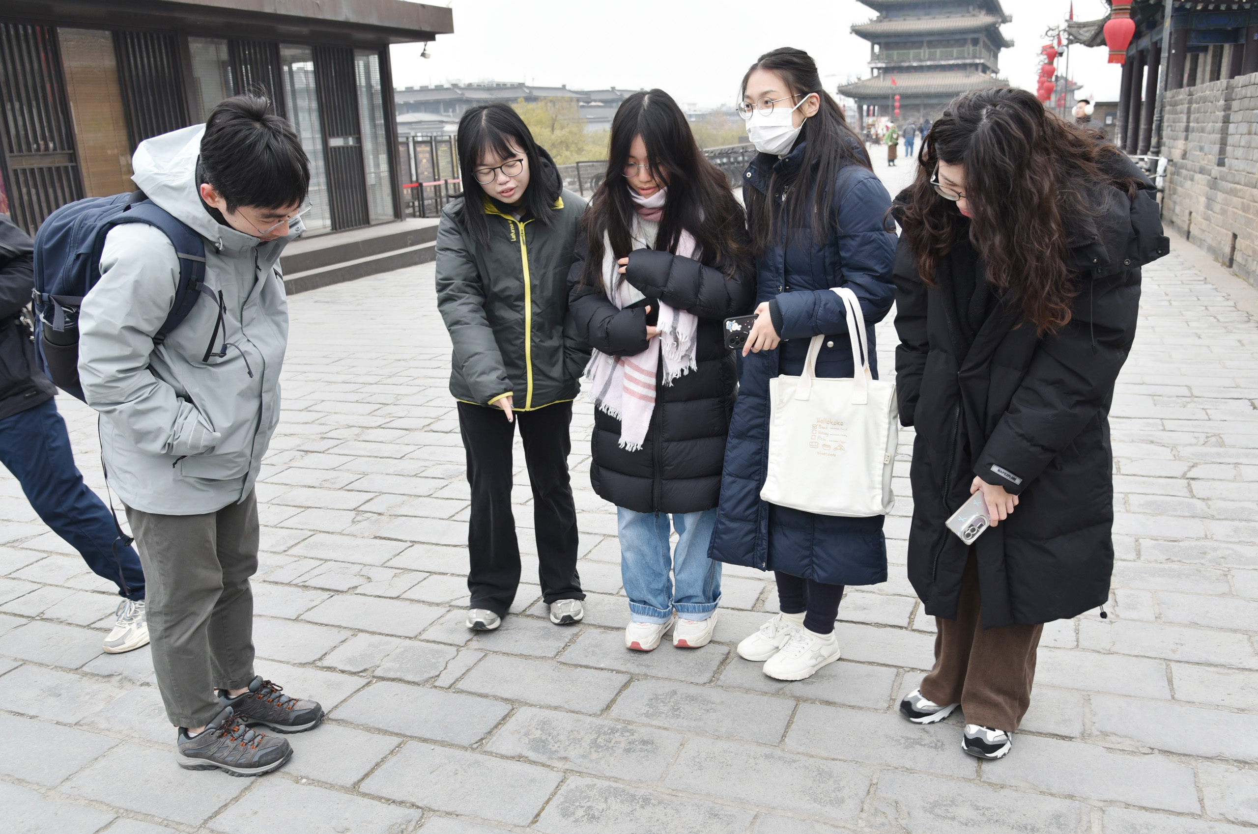 已有600多年歷史的西安城牆,是中國現存規模最大、保存最完整的古代城垣建築,其規劃和建築閃耀着許多古人的智慧。12月22日一早,登臨城牆後,教大學生陳汶淇便敏銳捕捉到了城牆建築過程中運用的數學元素。「城牆長約13.7公里,這個長度是由古代工程師根據城市的規劃和防禦需求精心計算出來的。」陳汶淇認為,古代建築在設計時,很多時候都運用了許多數學幾何知識,古代工匠使用不同圖形組成規律漂亮的外觀。