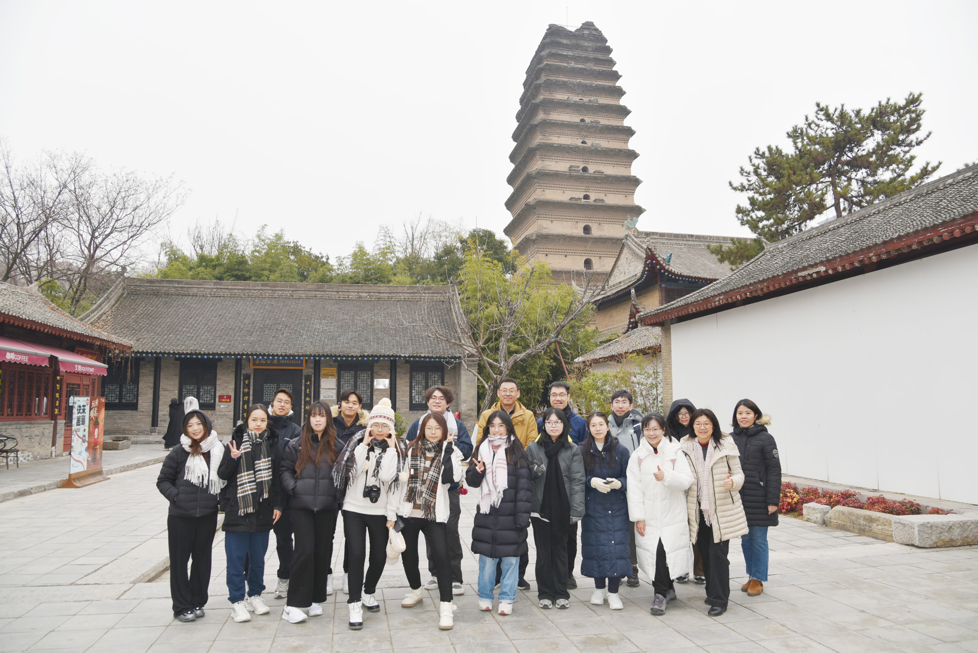 當日中午,教大師生一行調研了著名的北院門回坊文化風情街。下午先後參觀了西安博物院、西安大雁塔和大唐不夜城。國家一級博物館西安博物院,由博物館、唐薦福寺遺址、小雁塔三部分組成。特別是世界文化遺產小雁塔,已有1300餘年歷史,是西安地區保持了初建時原貌的唐代建築。