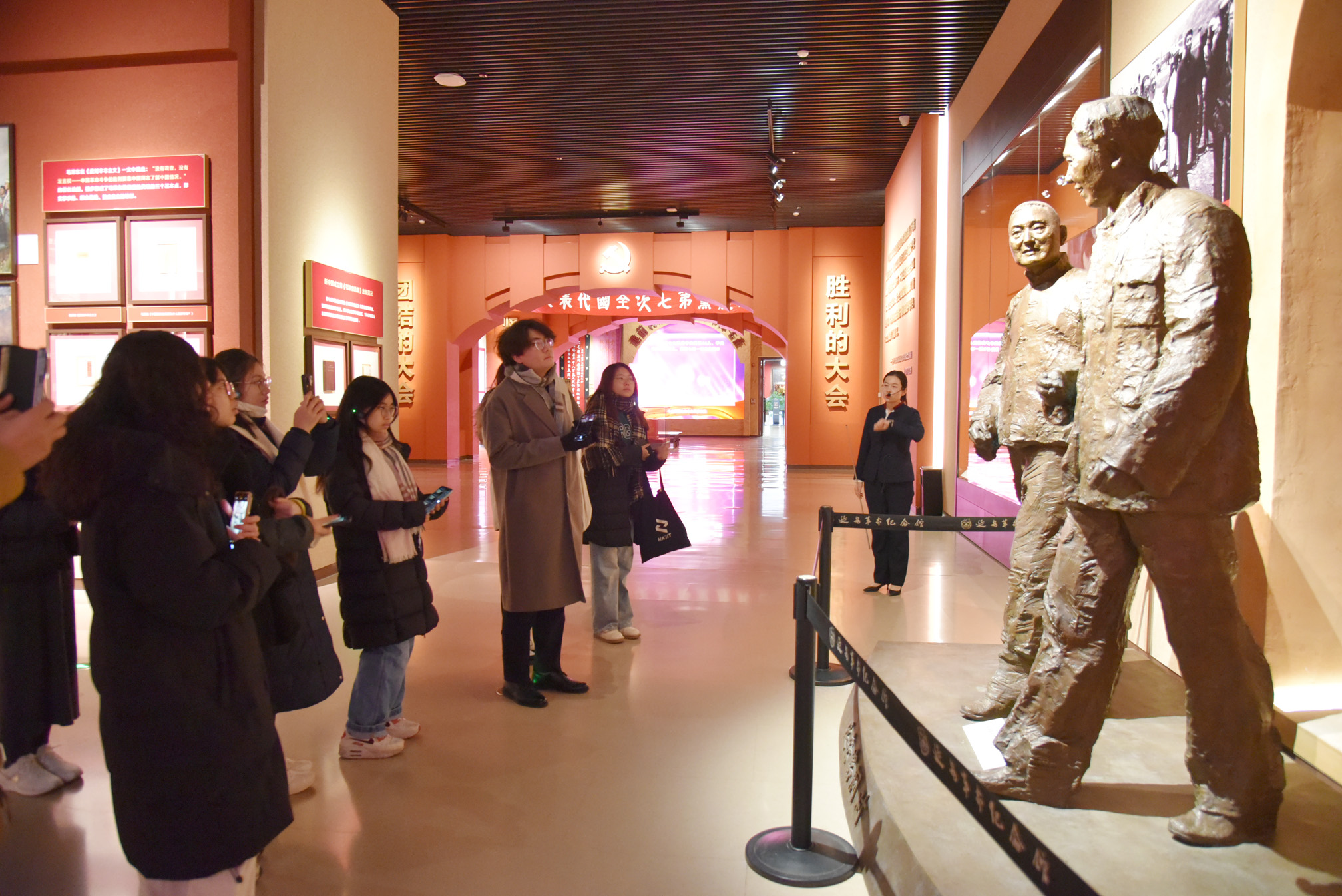 在參觀華清宮之後,教大師生一行隨即奔赴距離西安300公里之外的革命聖地延安。12月24日一大早,參訪團全體師生冒着嚴寒,來到延安革命紀念館,在實物與史料的交織中,打開一扇回望歷史的窗口,觸摸歷史溫度,追尋紅色足跡,汲取信仰的力量。