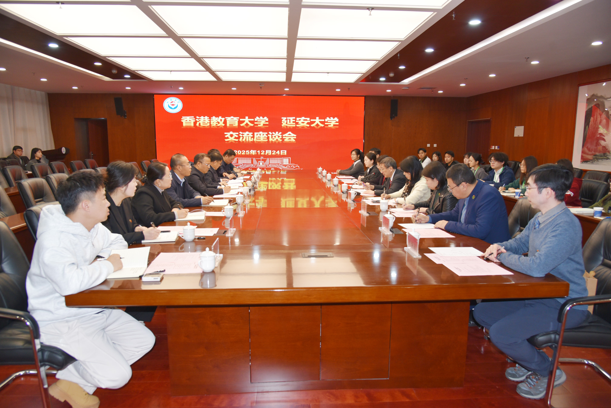 在延安期間,教大校長李子建教授率領參訪團全體師生,專程赴延安大學參訪交流,並與延安大學簽訂「教育合作備忘錄」。未來兩校將依託各自優勢,全面推進兩校在大思政課程、教育學及體藝教育等方面發揮協同效應,培養具「教育家精神」的學生。