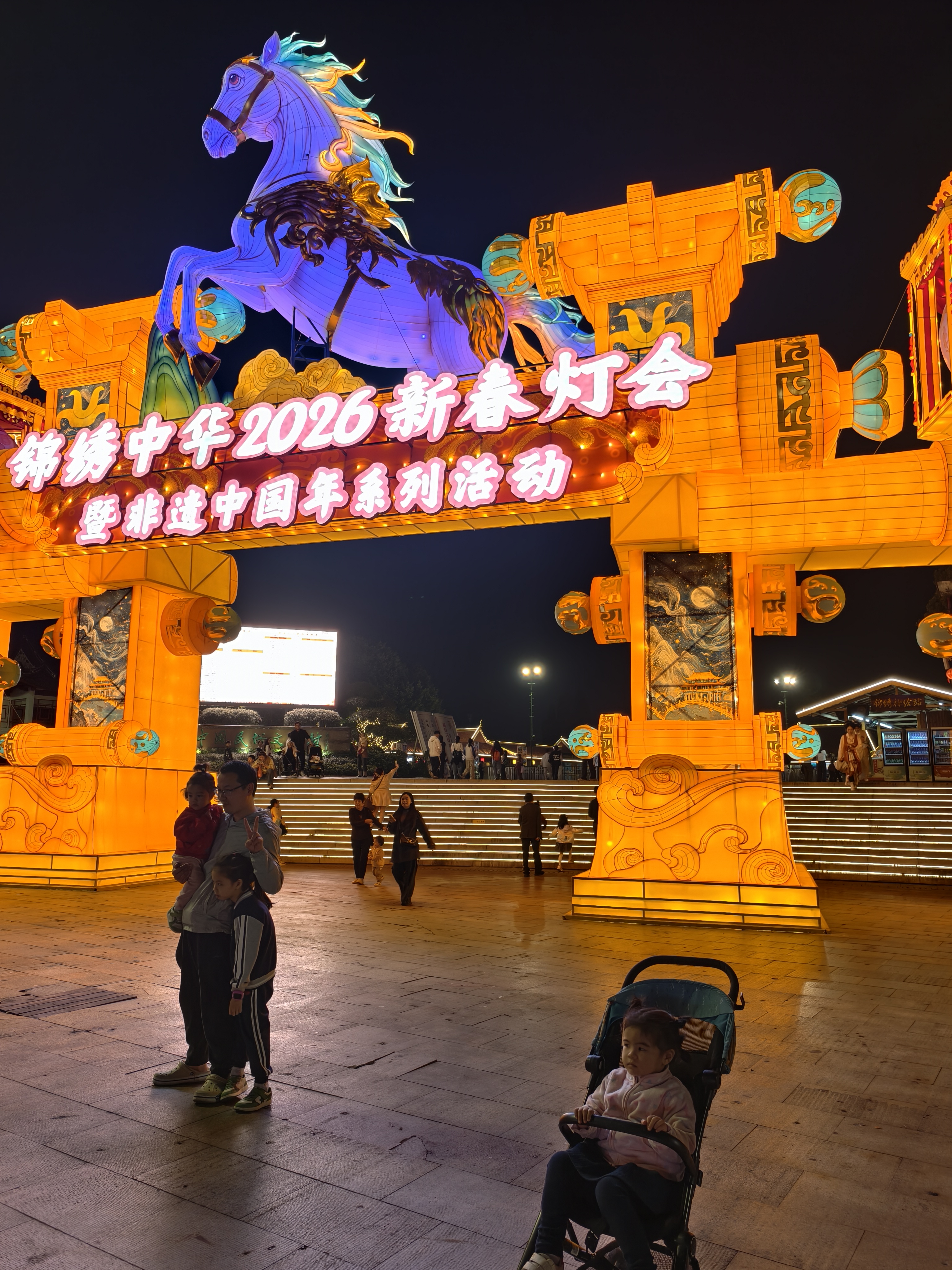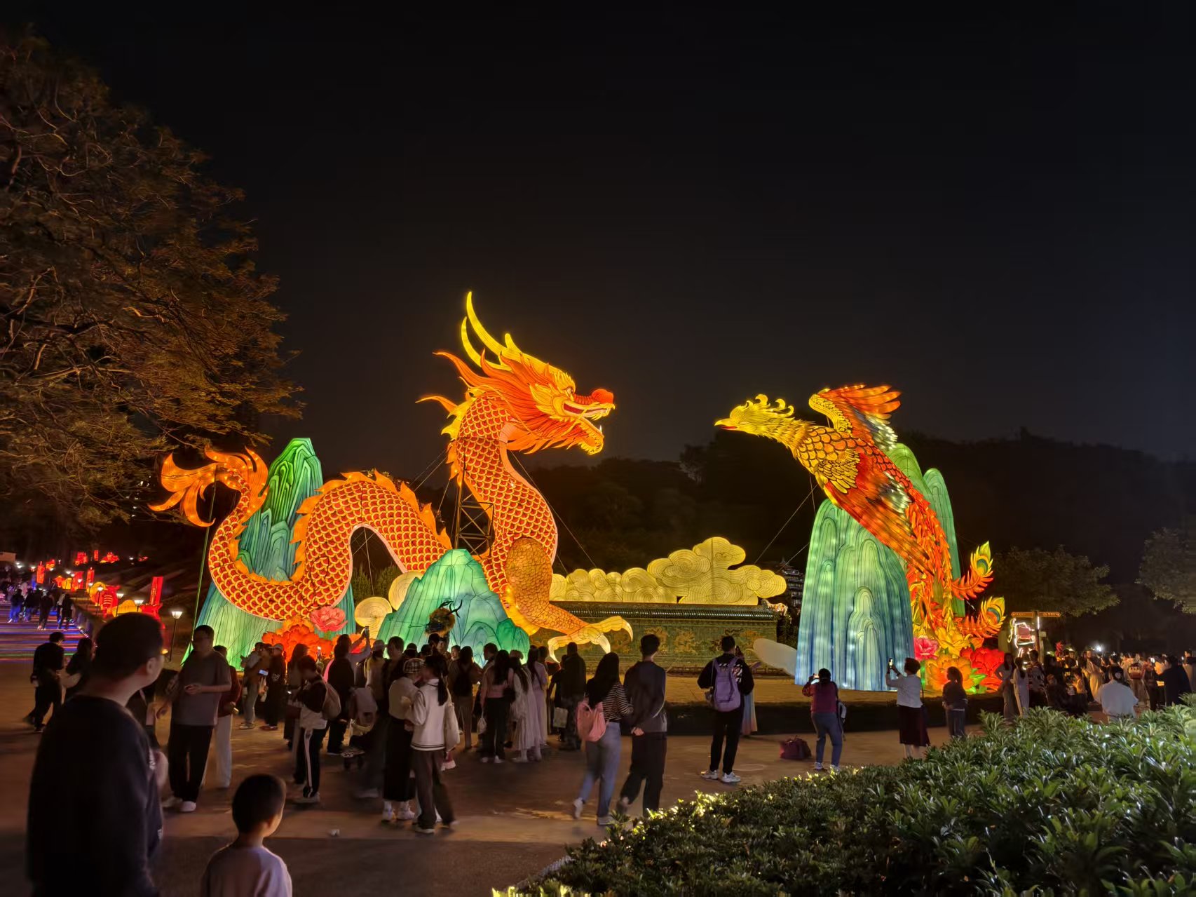 錦繡中華民俗村布置了53萬平方米的非遺燈海,四大主題、40多組璀璨燈組遍布園區、點亮夜空。還有恢弘大氣的故宮聯名「燈光裏的中國」、古韻清雅青花燈、呈祥喜慶的龍鳳燈組,更有十五運同款鰲魚燈組,隨手拍都是跨年氛圍感大片。