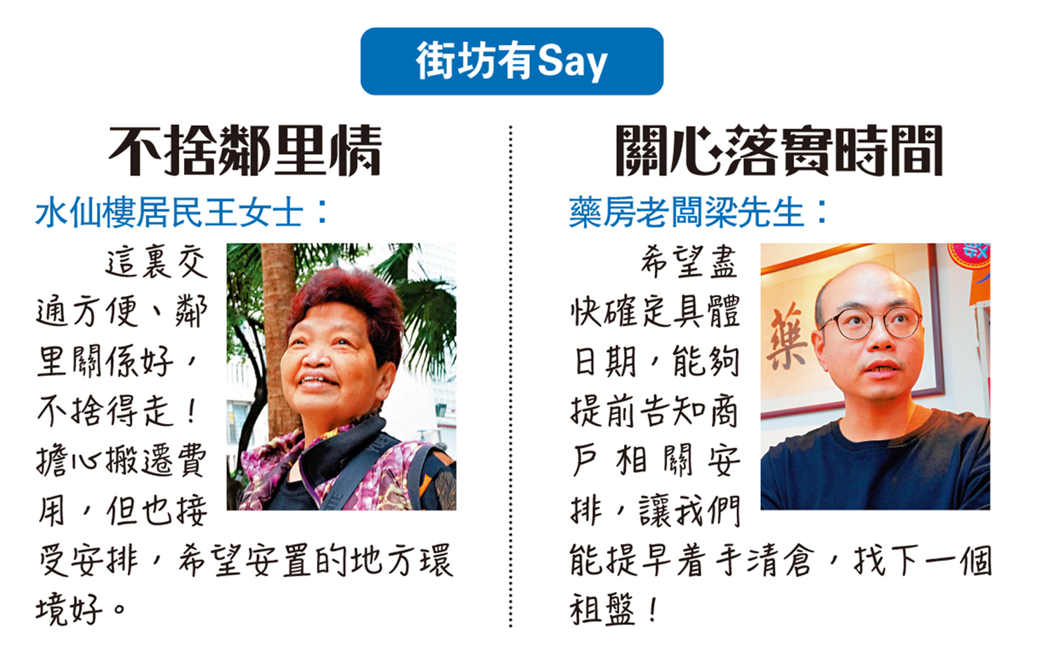藥房老闆梁先生:希望盡快確定具體日期,能夠提前告知商戶相關安排,讓我們能提早着手清倉,找下一個租盤!