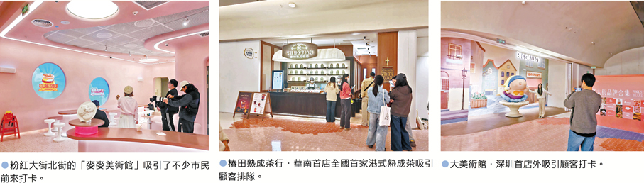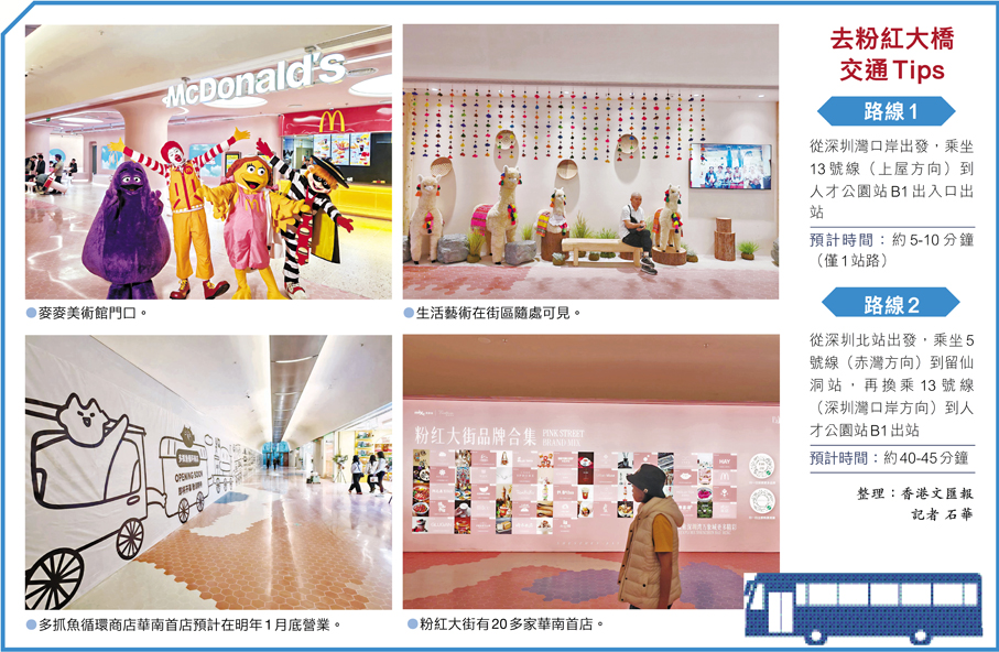 「我是在小紅書了解到粉紅大街的,今天特意來逛一下,街區的粉紅色調、互動藝術裝置很適合拍照打卡。」正在排隊購茶的港人梁女士告訴香港文匯報記者,粉紅大街的「首店集群」和藝術氛圍對年輕群體極具吸引力。「元旦打算約朋友來打卡麥麥美術館,順便逛人才公園看落日。」