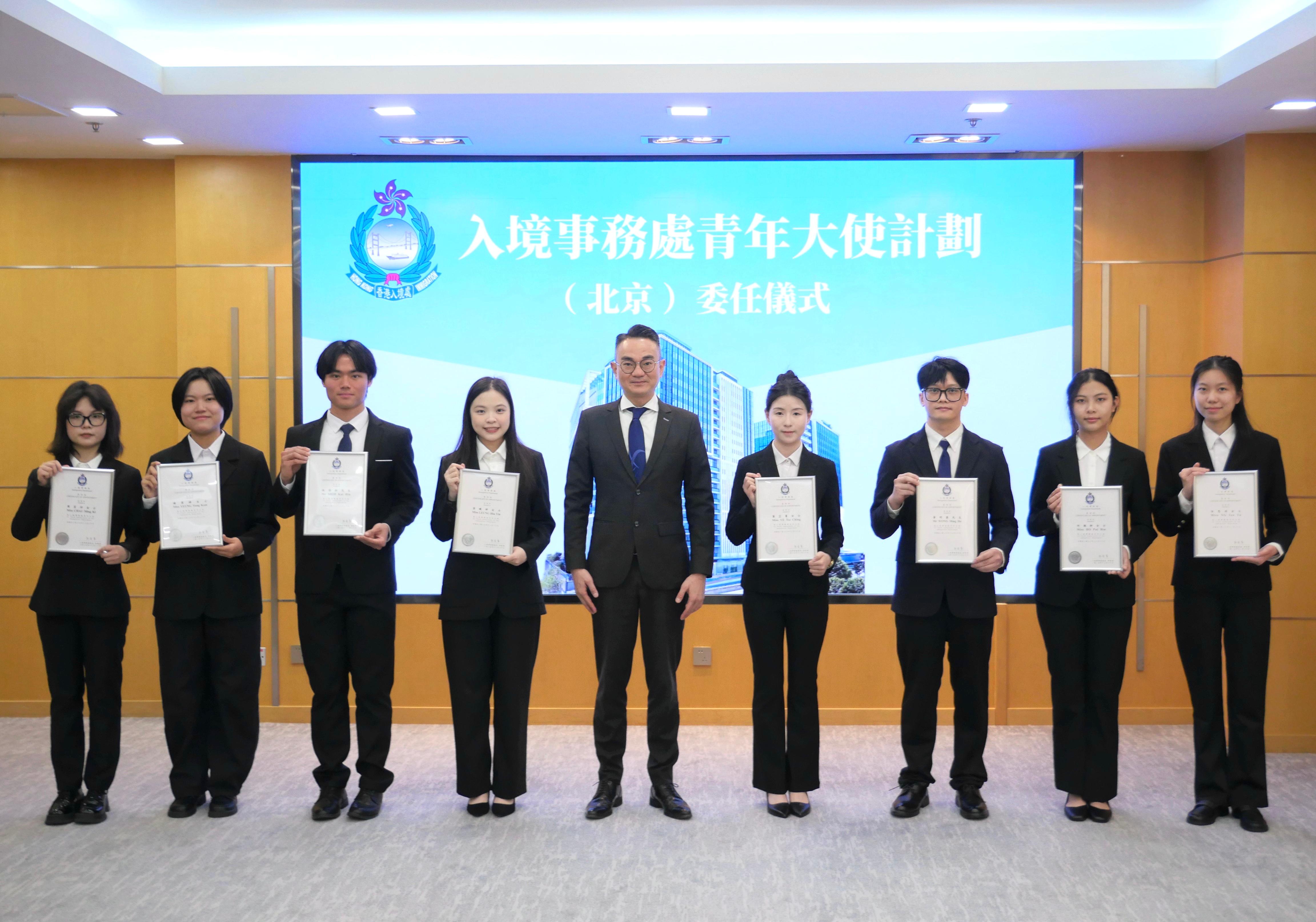 入境處於2023年11月正式啟動「入境事務處青年大使計劃」,是入境處青年工作多元化的重要里程碑。從北京出發,計劃逐步覆蓋特區政府各駐內地辦事處入境事務組,為心懷抱負、心繫家國的香港青年搭建起成長交流的平台,讓愛國愛港的價值觀在奮鬥中凝聚,傳遞更多社會正能量。