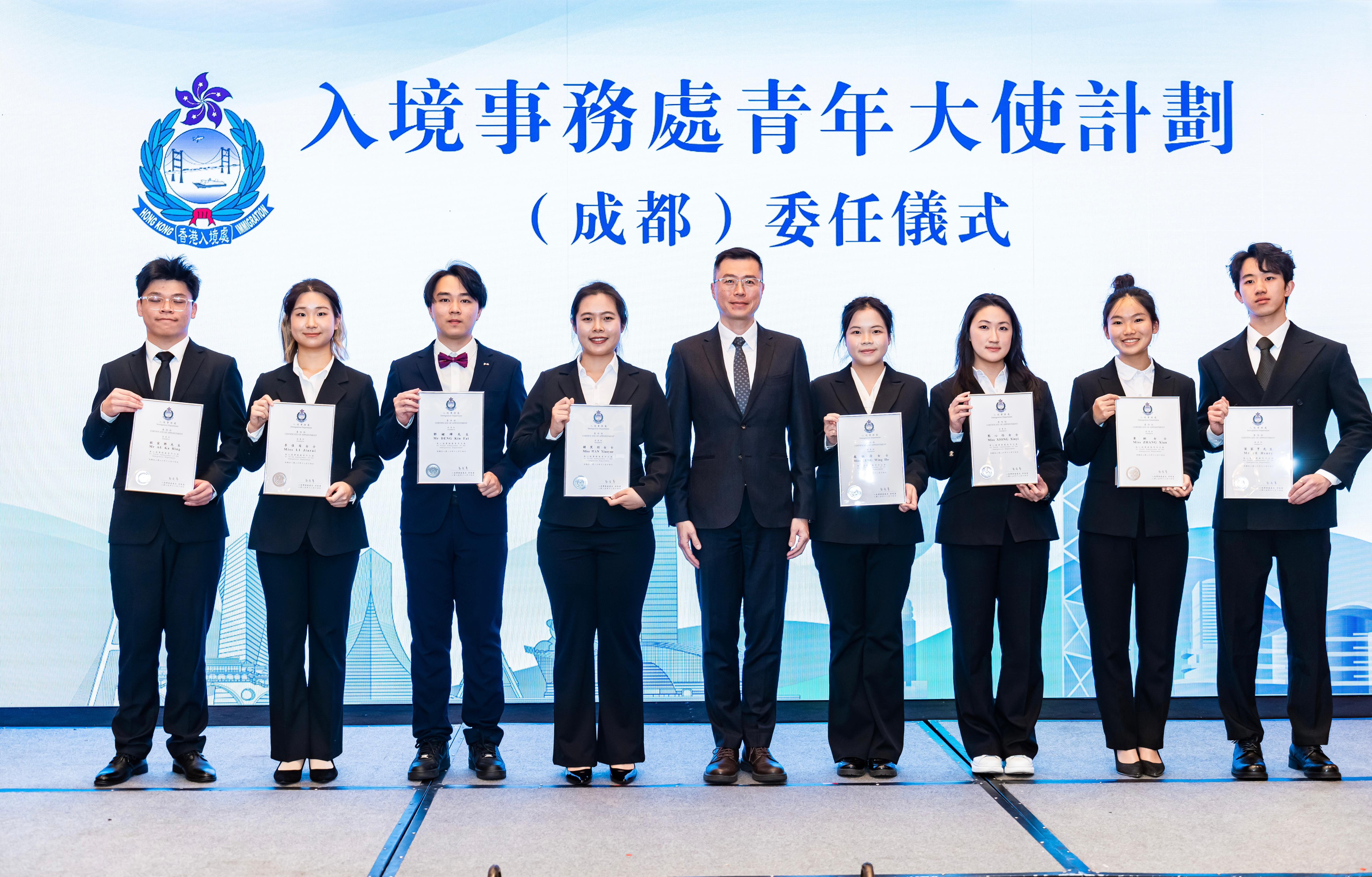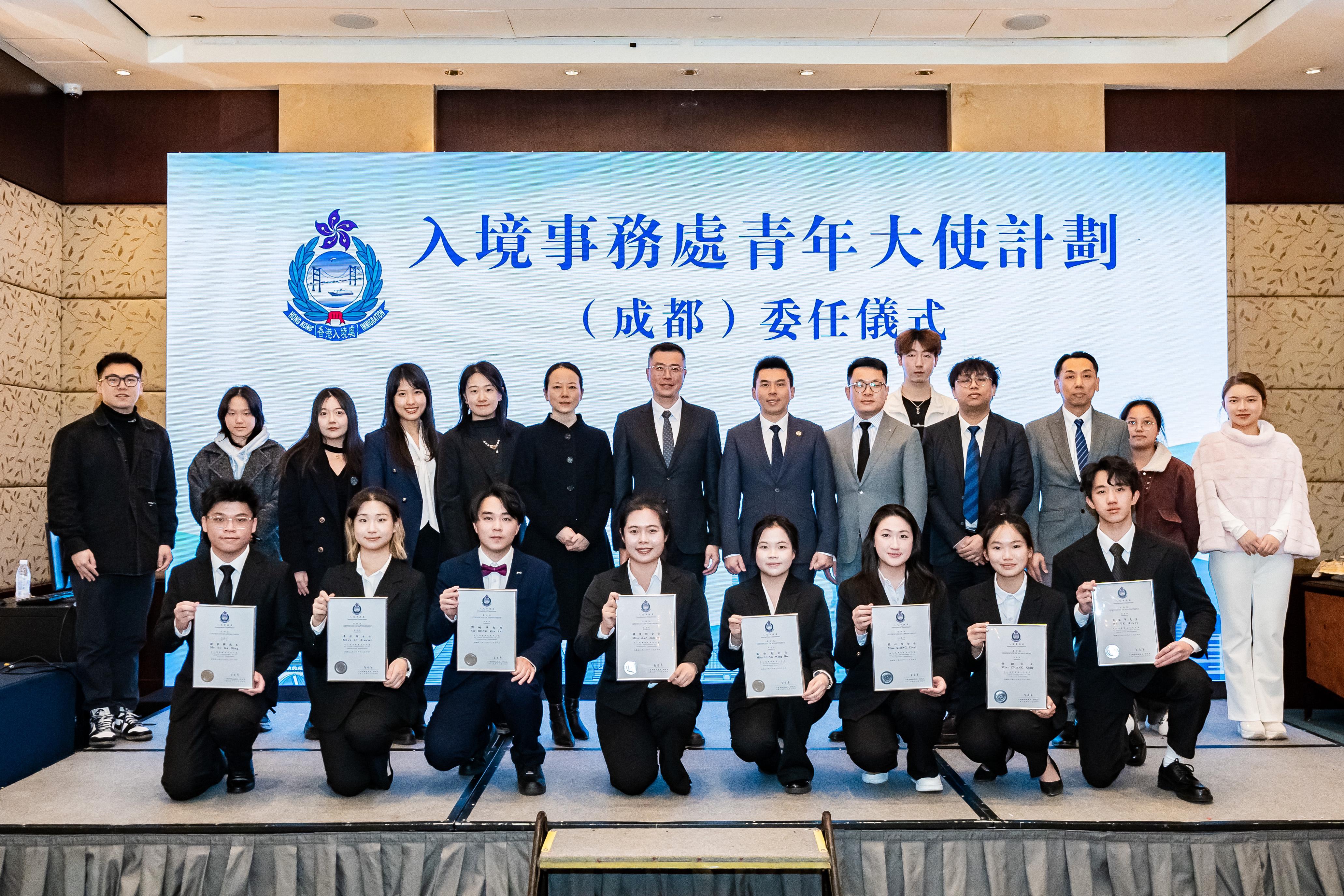 願新一屆青年大使在任期裏收穫滿滿、書寫自己的精彩新篇章!更期待大家以青春為橋樑,當好兩地青年交流的紐帶,向世界講好中國故事、香港故事,也講好屬於入境處的溫暖故事。