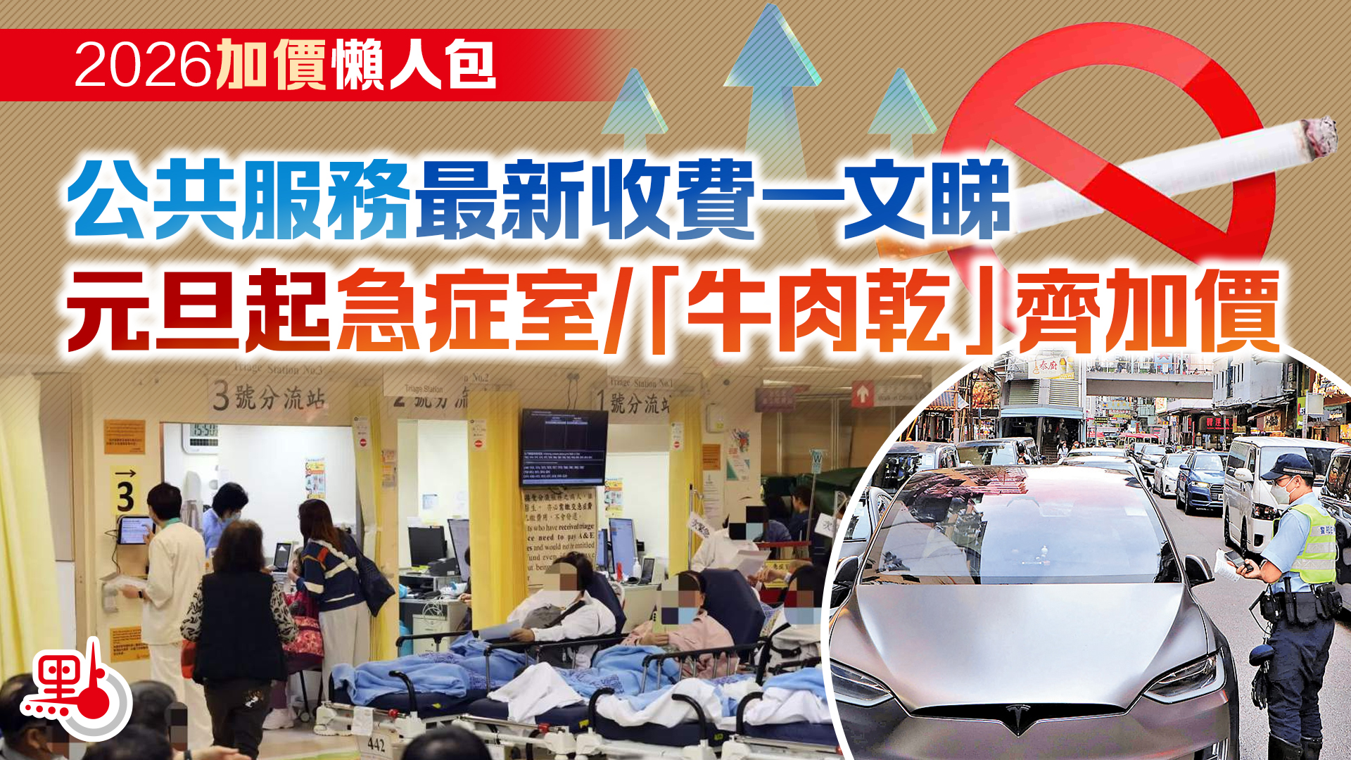 (大公文匯全媒體記者九皋整理)踏入2026年,本港公立醫院及不少公共服務調整收費或加價,大公文匯全媒體整合相關資訊,讓你一文睇清!其中,公營醫院今日(1月1日)起實施新的收費改革,屆時住院服務、急症室、門診服務(街症)、藥物等收費均會加價。而吸煙罪行定額罰款金額亦「翻倍」,由1,500元提高至3,000元。不過,中電和港燈則在元旦日減電費。