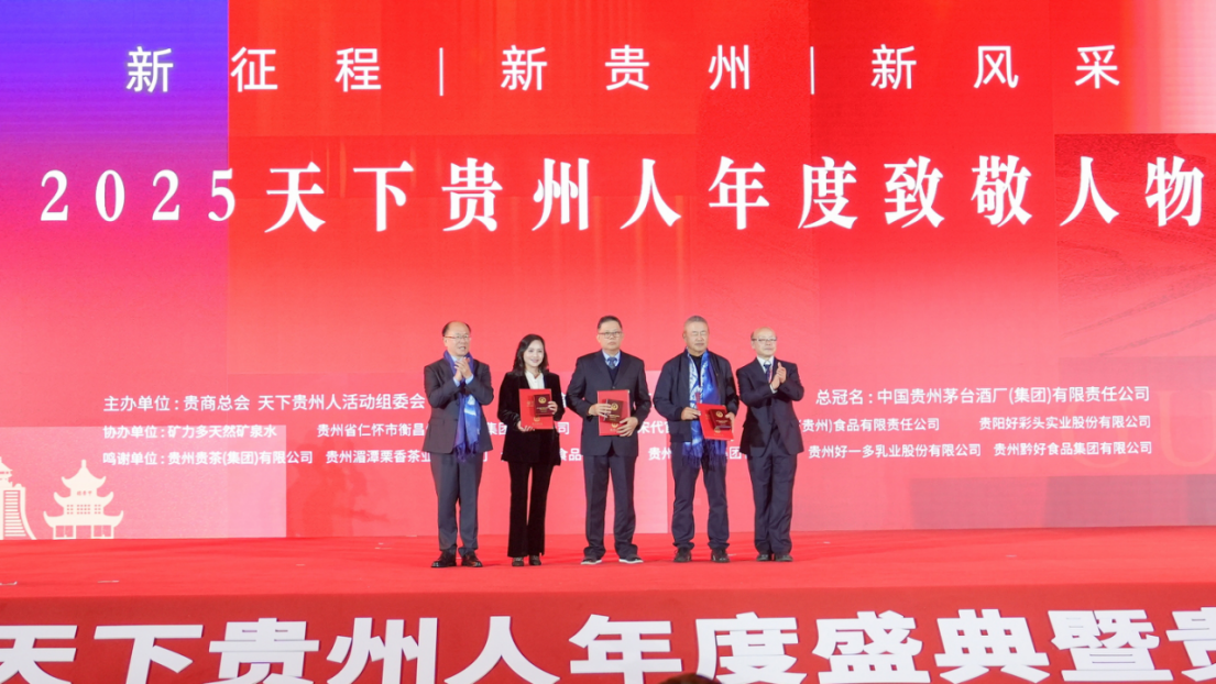 盛典的重要環節——「2025天下貴州人年度人物發布儀式」成為焦點。儀式匠心獨運地設立「年度致敬人物」「年度影響力人物」及「年度影響力集體」三大板塊,獲獎者覆蓋智庫、科技、醫療、教育、公益、商業、文化等廣泛領域,立體呈現了新時代貴州人群像的多元、堅韌與創新精神。
