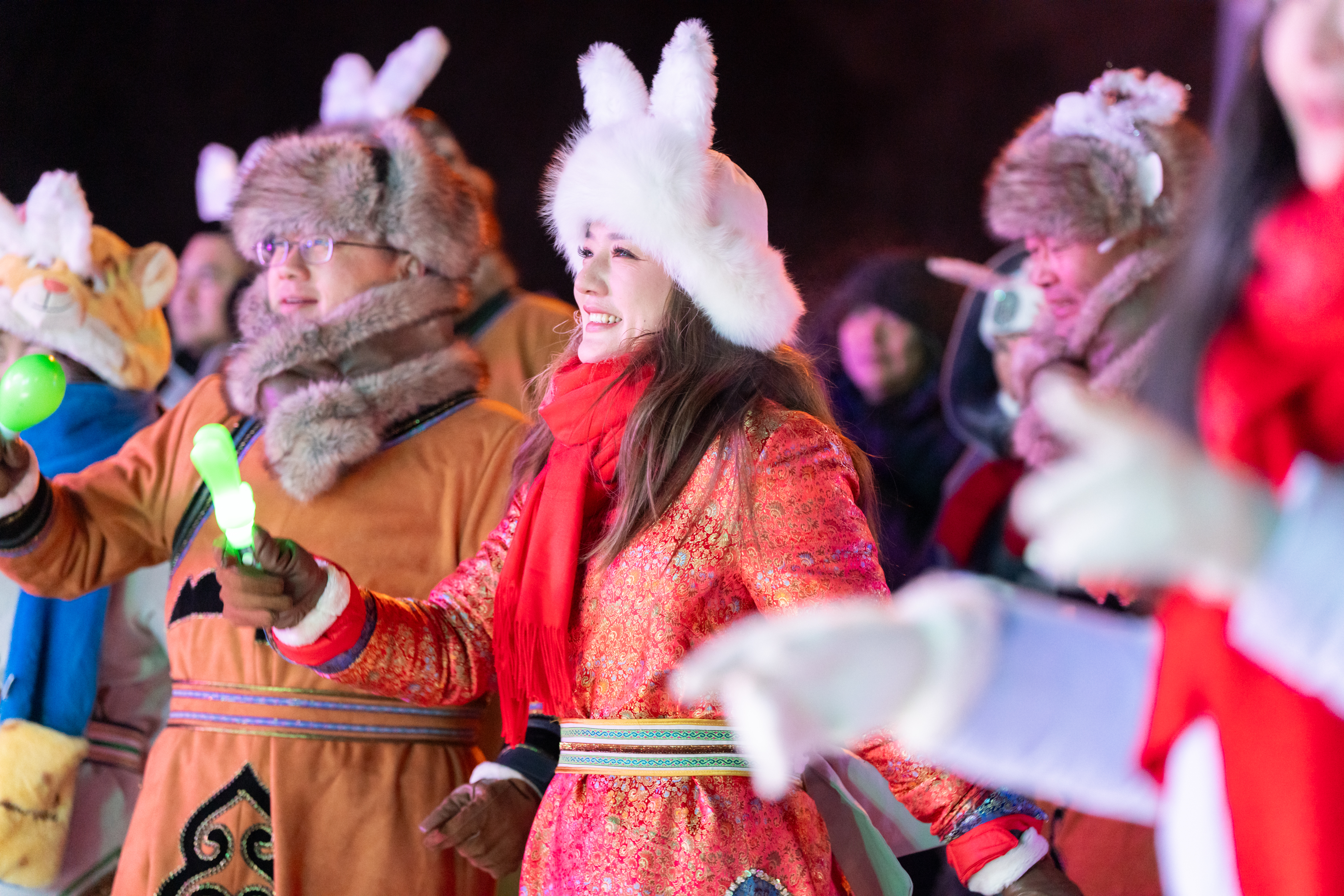 隨着夜幕降臨,室外溫度接近零下三十度,但世紀廣場的熱度持續攀升。「中俄炫彩狂歡夜」雪地蹦迪準時開啟,《大東北是我的家鄉》等搖滾改編經典歌曲輪番上陣,人們在冰雪中盡情釋放熱情。四川遊客陳昱希開心地說,活動非常熱鬧,雖然冷但心裏暖和,還祝大家新的一年馬到成功、馬上有錢。
