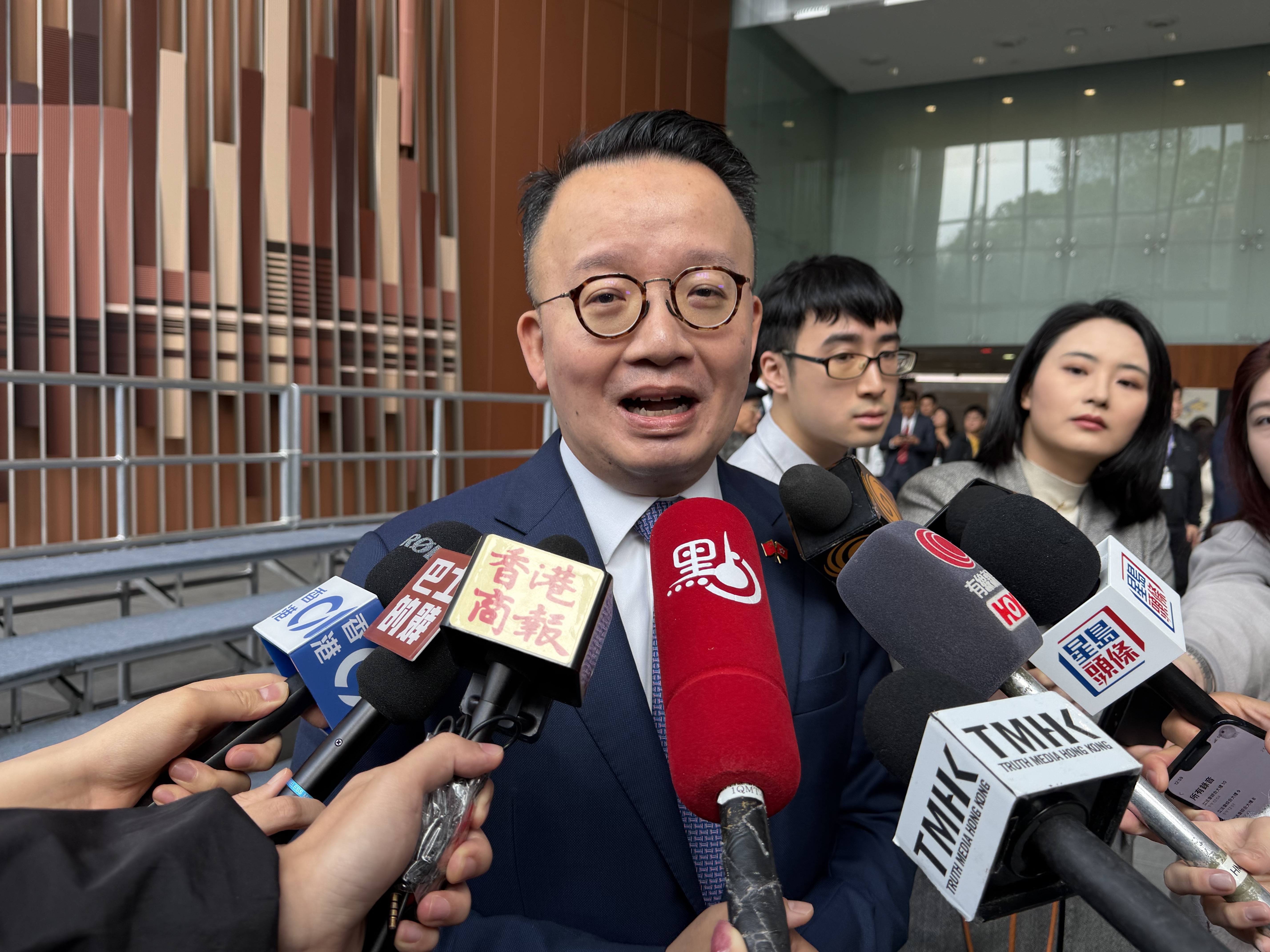 法律界議員陳曉峰表示,為了在「一國兩制」下釋放「十五五」規劃的優勢,一定要明確如何融合及參與國家發展,「未來充滿挑戰,社會仍待深化改革,希望能夠結合『法政商產學研投』各界力量與90位議員一起在『行政主導』體制下推進。」作為法律界別代表,他希望提升香港法治及營商環境,並強調法治不能滯後科技和社會的進程,他認為香港可利用好國際調解院、亞非法協香港區域仲裁中心的新機遇。此外,他亦提及宏福苑火災帶出許多亟待解決的問題,並建議設立維修局,幫助業主法團監管工程招標。