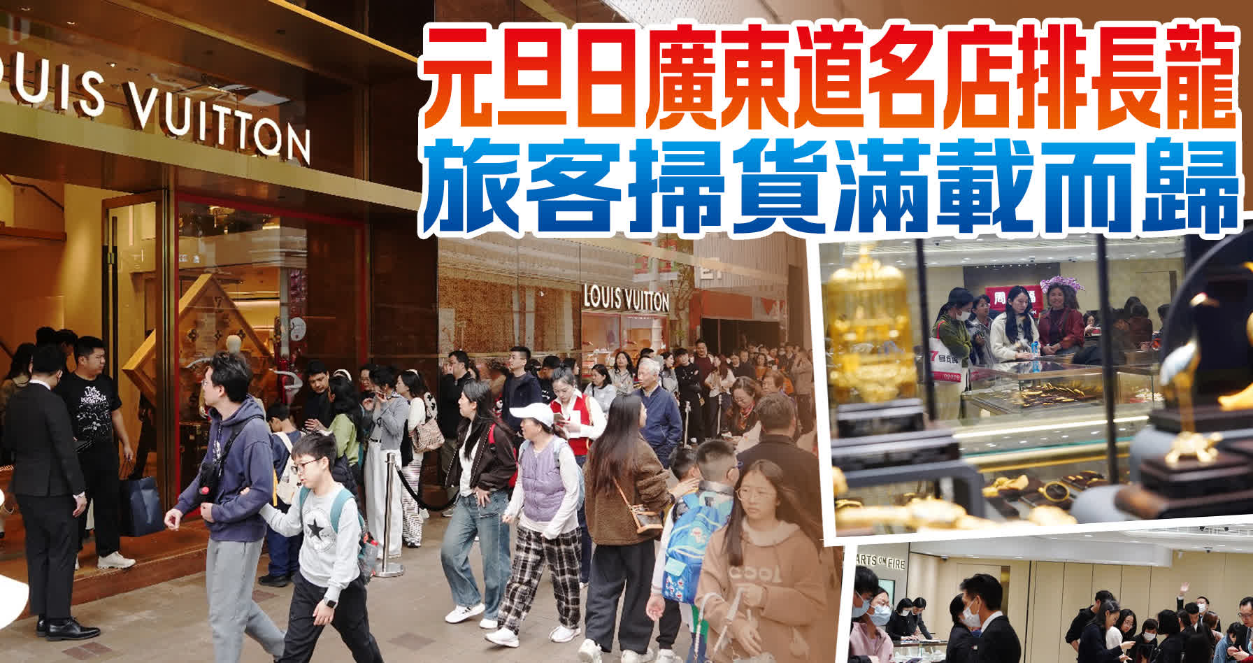 大公文匯全媒體報道,新年伊始,尖沙咀商業區洋溢着蓬勃的節日歡騰,不少內地旅客趁元旦日(1月1日)有一連3天假期來港旅遊,廣東道一帶人潮湧動,名牌店舖門前更比肩接踵,排起蜿蜒長龍,顧客手中提滿琳琅滿目的購物袋,幾乎人人滿載而歸,笑逐顏開。現場所見,有內地旅客把握匯率優勢,痛快選購心儀的名牌手袋與化妝品;本地市民亦趁假日上街消費。