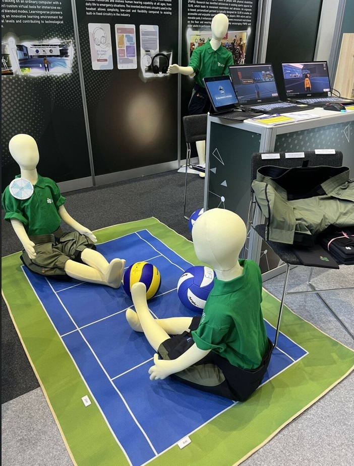 坐地輕排球由梁博士團隊研發,能有效改善殘疾人士的敏捷度、心血管耐力及上肢肌力,同時提供愉悅的運動體驗。其為坐姿運動所開發的多功能運動裝備亦獲國際肯定,曾於2023年日內瓦國際發明展中奪得銅獎,同年亦在加拿大國際發明創新大賽上榮獲金獎及特別獎。