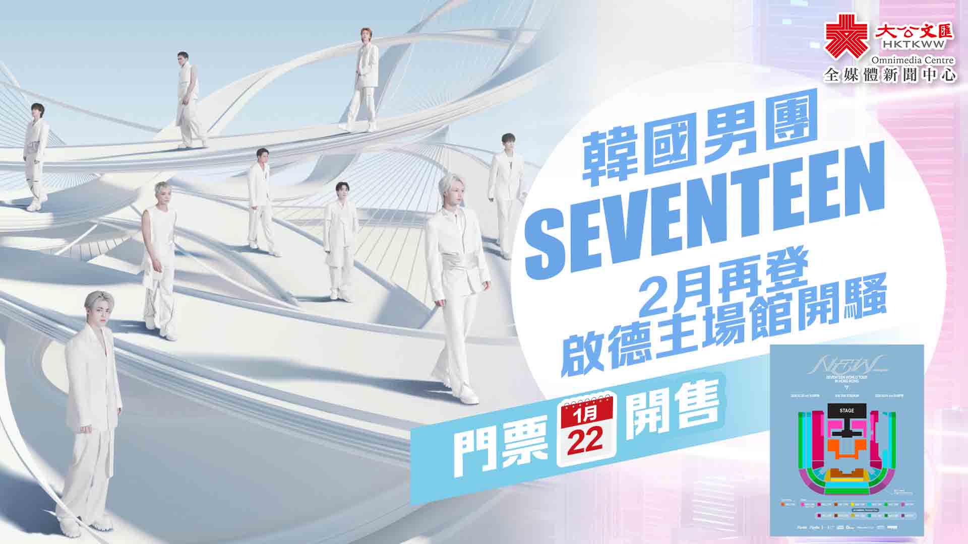 大公文匯全媒體報道,韓國超人氣組合SEVENTEEN將於2月28日及3月1日假啟德主場館舉行演唱會 — SEVENTEEN WORLD TOUR [NEW_] IN HONG KONG,這將是他們繼上年9月來港舉行演唱會後,再次在啟德主場館開唱。
