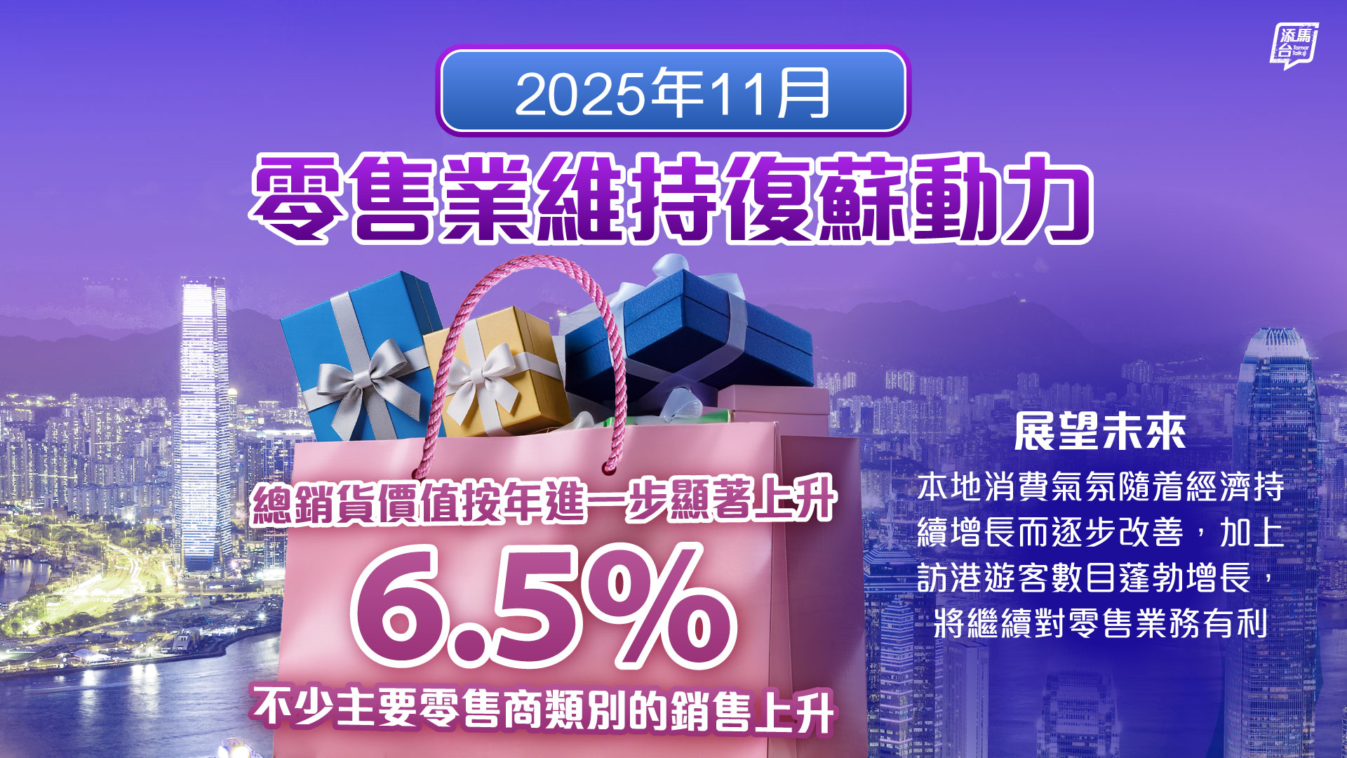 展望未來,本地消費氣氛隨着經濟持續增長而逐步改善,加上訪港遊客數目蓬勃增長,將繼續對零售業務有利。