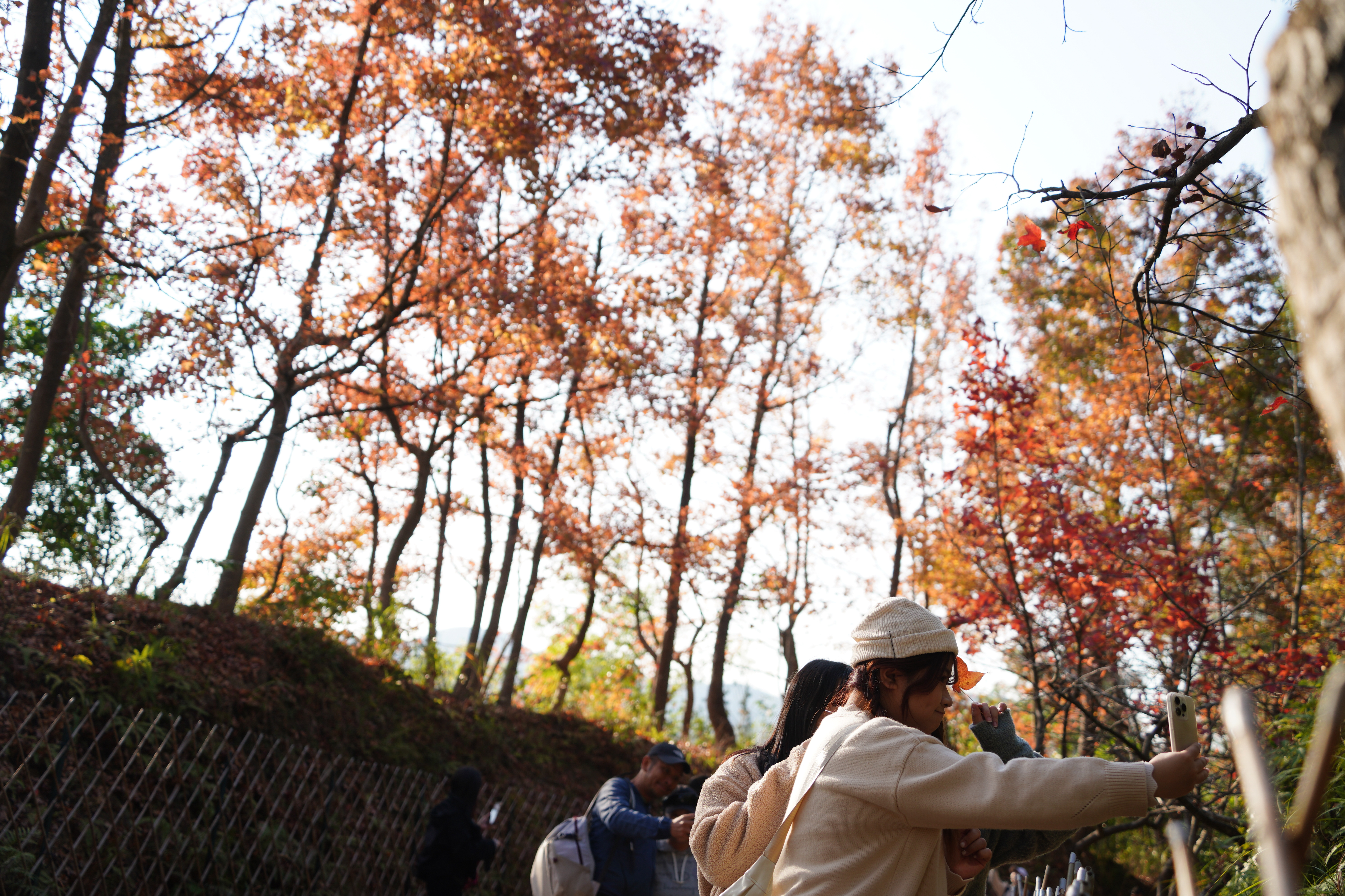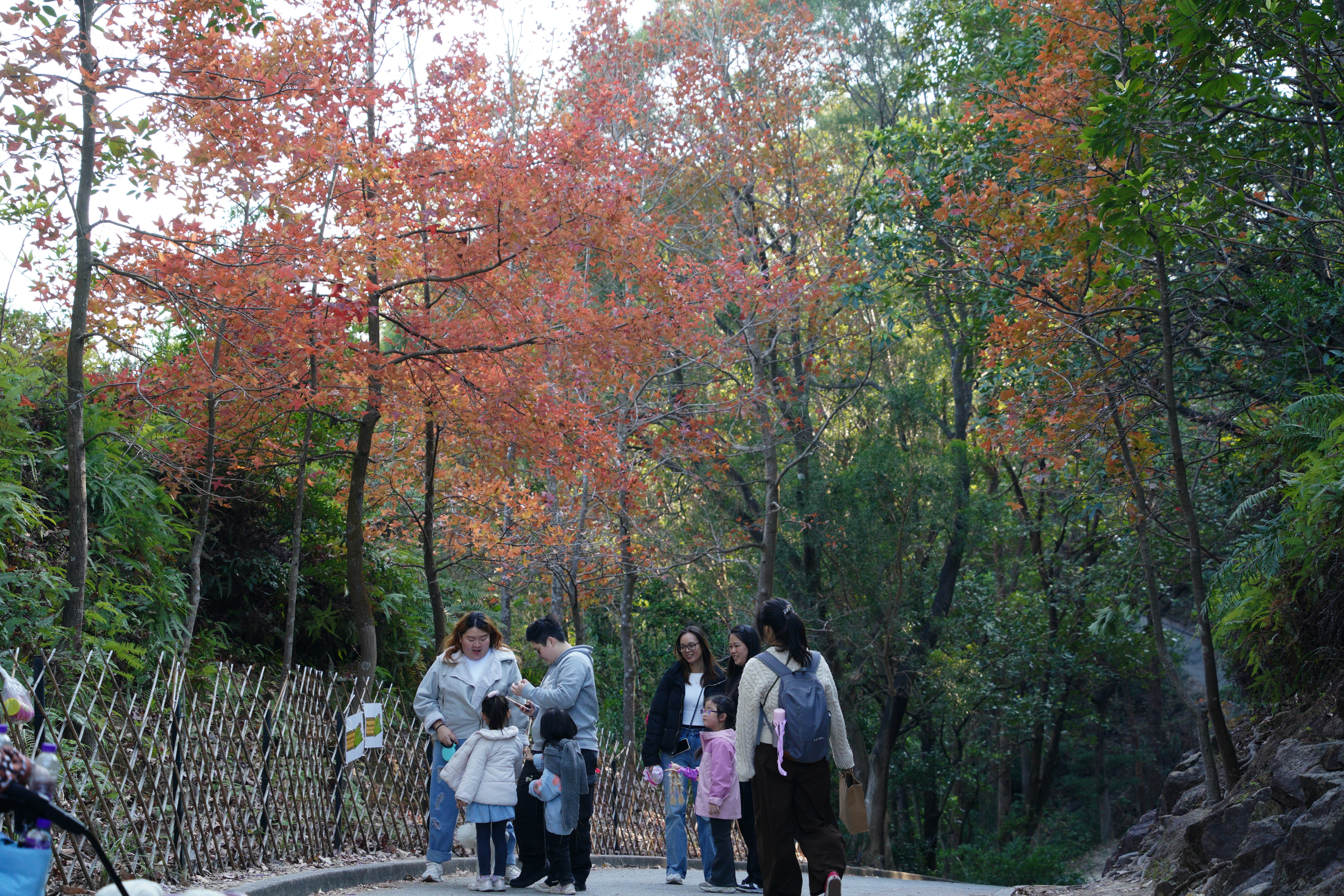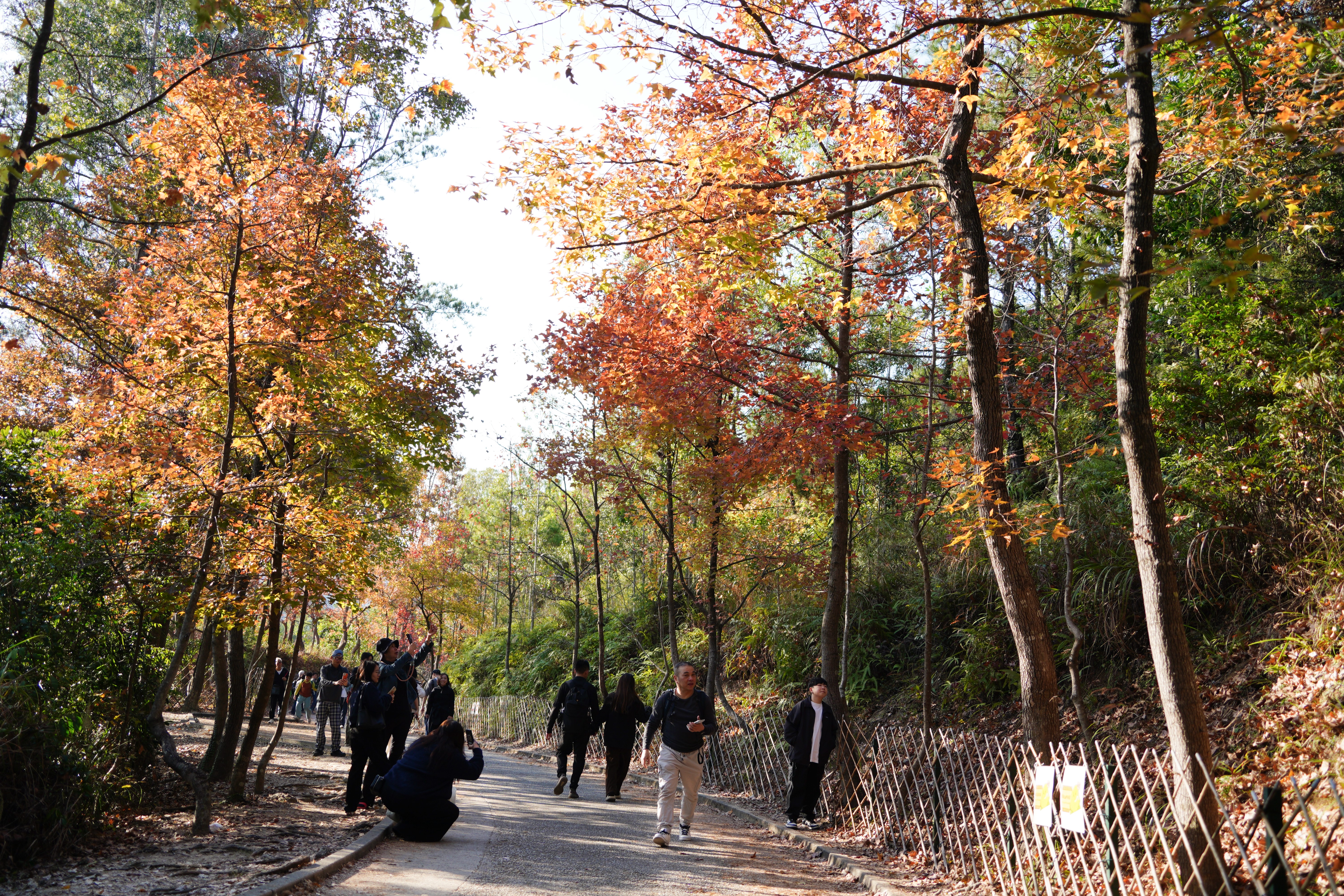 (大公文匯全媒體記者 麥鈞傑)香港的自然風光一直廣受好評。大熱郊遊地點之一的元朗大棠楓香林近日迎來賞楓旺季,吸引大批市民及內地旅客專程到訪,現場人流絡繹不絕,更有市民沿途拍攝紅葉美景。