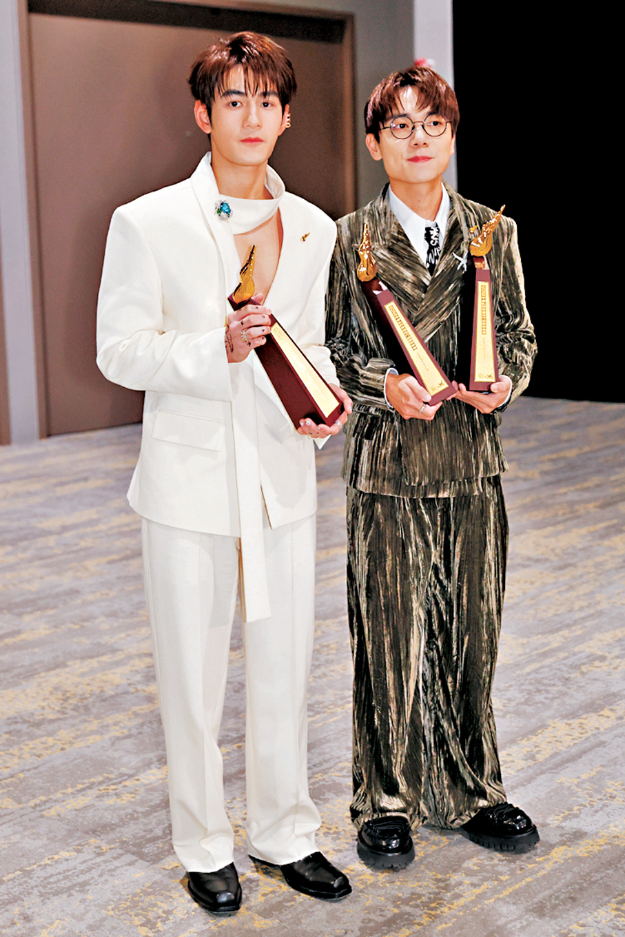記者續問Jay得獎後會否計劃結婚?Jay表示近年雙方家中各有要事發生,婚事暫緩,但特別感謝女友一直以來的支持與鼓勵:「我最想多謝她,回家一定要視訊跟她說,你看我拿到了什麼!」至於Gin又會否拿獎座回家與另一半分享喜悅?她笑稱「沒有這個環節」。Gin和Jay本身有在音樂上合作,記者笑問可想過推出一首「雙金」合唱歌?Gin笑言「諗諗先」,但二人會相約共同的朋友一起食飯慶祝。