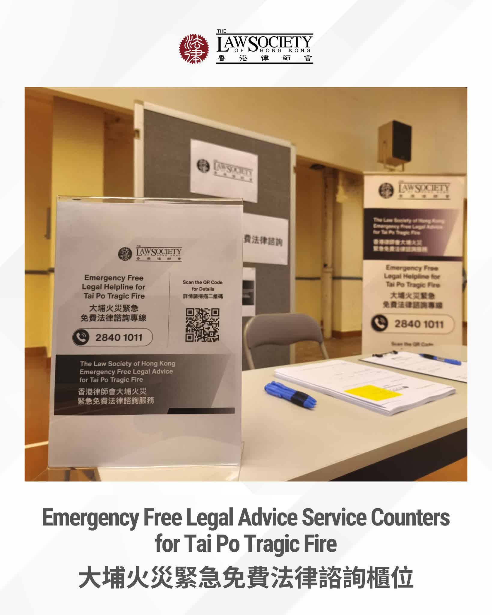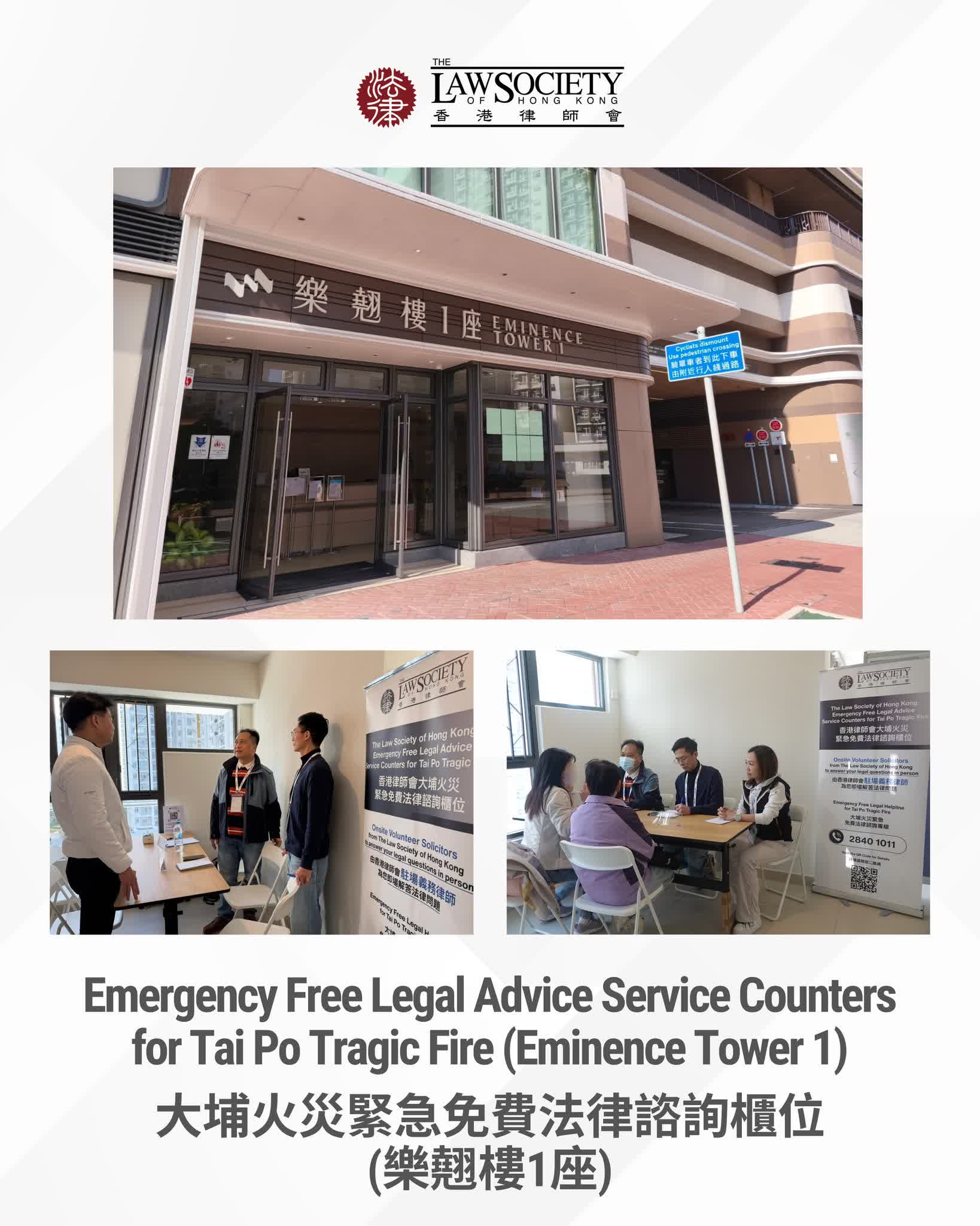 大公文匯全媒體報道,香港律師會今日(3日)在社交平台表示,自上月起,律師會已在香港不同地區設立了6個緊急免費法律諮詢服務櫃位,為受大埔火災影響的居民提供及時和專業的法律支援。今天律師會在洪水橋樂翹樓1座增設多一個服務櫃位,令服務櫃位總數擴充至7個。