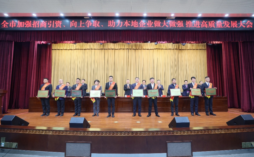 堅持「以實績論英雄」的導向,大會宣讀了《關於表彰2025年度蚌埠市經濟社會高質量發展貢獻獎先進集體和先進個人的決定》《關於對2025年度招商引資工作作出突出貢獻人員記功嘉獎的通報》,並為有關單位和個人頒獎,為14個招商分局授旗。