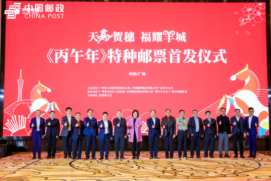 今日(5日)上午,《丙午年》特種郵票首發活動在廣州市從化區從都國際莊園盛大舉行。活動由廣州市人民政府新聞辦公室與中國郵政集團有限公司廣東省分公司共同主辦,廣州市從化區人民政府、中國郵政集團有限公司廣州市分公司、廣州市集郵協會共同承辦,香港賽馬會支持。