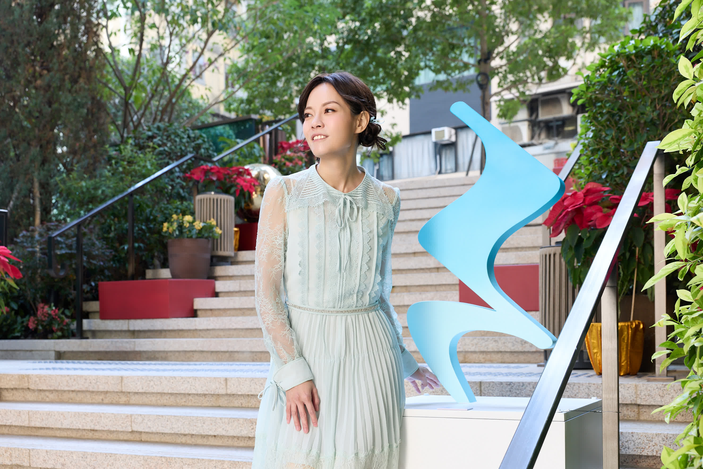 展區外的雕塑雕塑作品《聽花吟》則是由楊嘉美以聲音視覺化為創作核心,將聲音的振動、節奏與情感轉化為可視、可觸的雕塑形態,讓觀者尤其是聽障社群,能透過視覺與身體接觸,感受聲音所帶來的共鳴與情緒流動;另一社區藝術裝置《Do-Re-Mi》,來源於路德會啟聾學校的學生親手繪畫音符,結合KEF的揚聲器與Nanoleaf的智能燈光,將學生的創作變成躍動的光影與節奏。