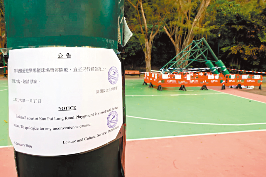 康文署亦在現場貼出公告,指籃球場暫停開放,直至另行通告為止。