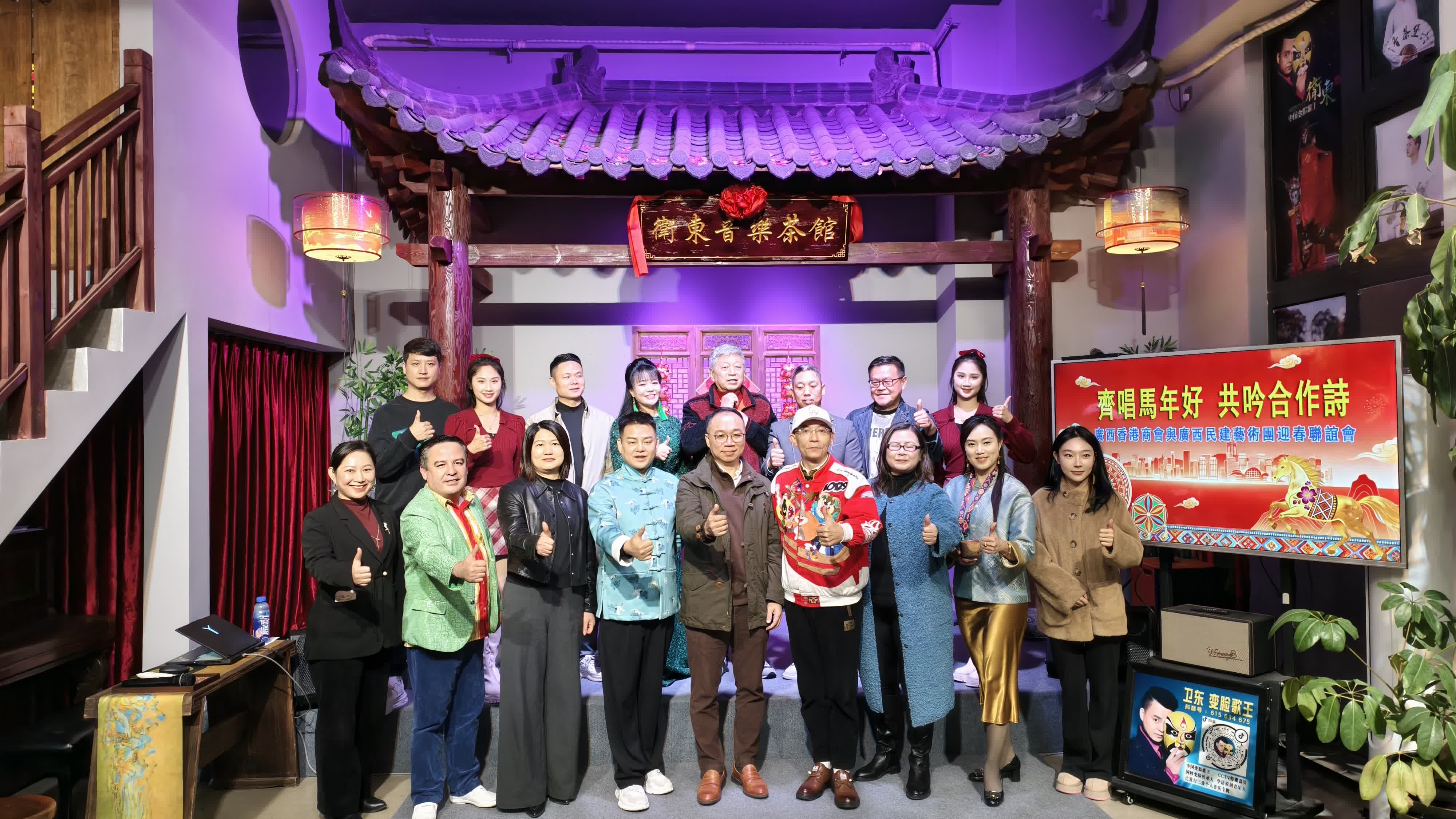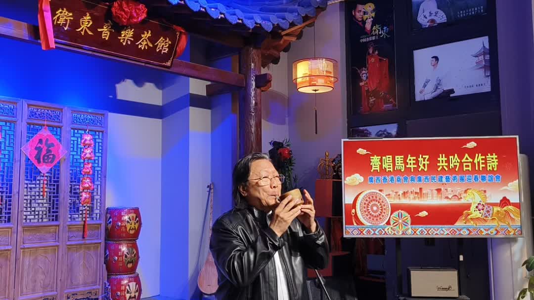 1月4日,廣西南寧市衛東音樂茶館內暖意融融,一場以「齊唱馬年好,共吟合作詩」為主題的迎春聯誼會在此舉行。廣西民建藝術團與廣西香港商會聯合舉辦此次活動,通過非遺文化展演與文藝互動,為在桂香港同胞送上新春祝福,更以藝術為媒深化兩地經貿文化合作。廣西香港商會會長潘家穰、廣西民建藝術團團長林湧泉等與近百名在桂港商、藝術家共襄盛舉。