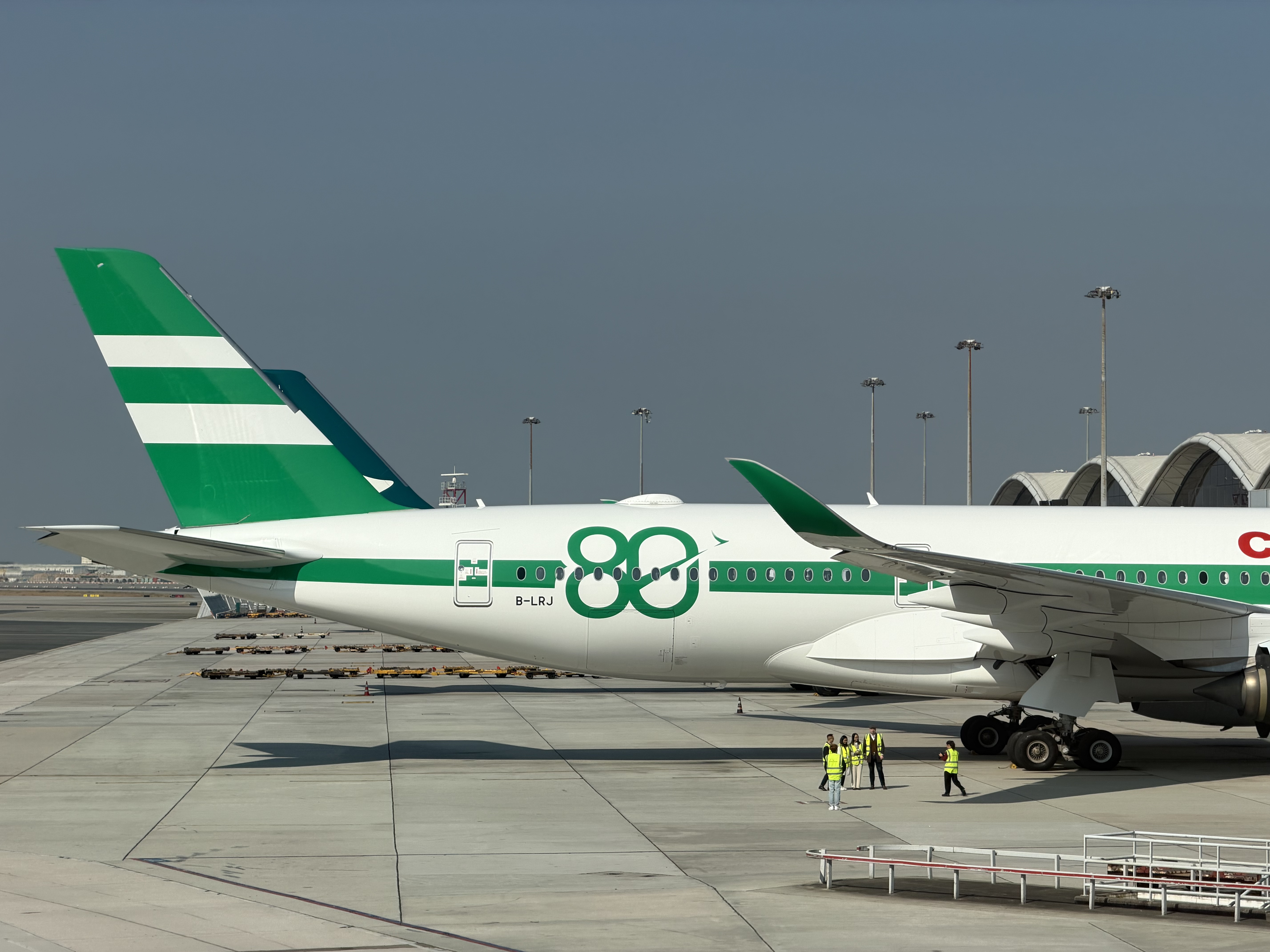 團隊成員回顧國泰80年發展歷程:「1946年,兩位前空軍飛行員購入第一架飛機DC-3,並命名為『Betsy』,國泰航空正式成立。最初國泰的機身是紅色,到了20世紀60年代,才引入綠色,當時香港各處都能看到綠色,包括郵政信箱、港鐵列車等,綠色隨處可見,而綠色在波音747上變得極具標誌性,就像生菜夾在麵包內,於是變成了經典」。