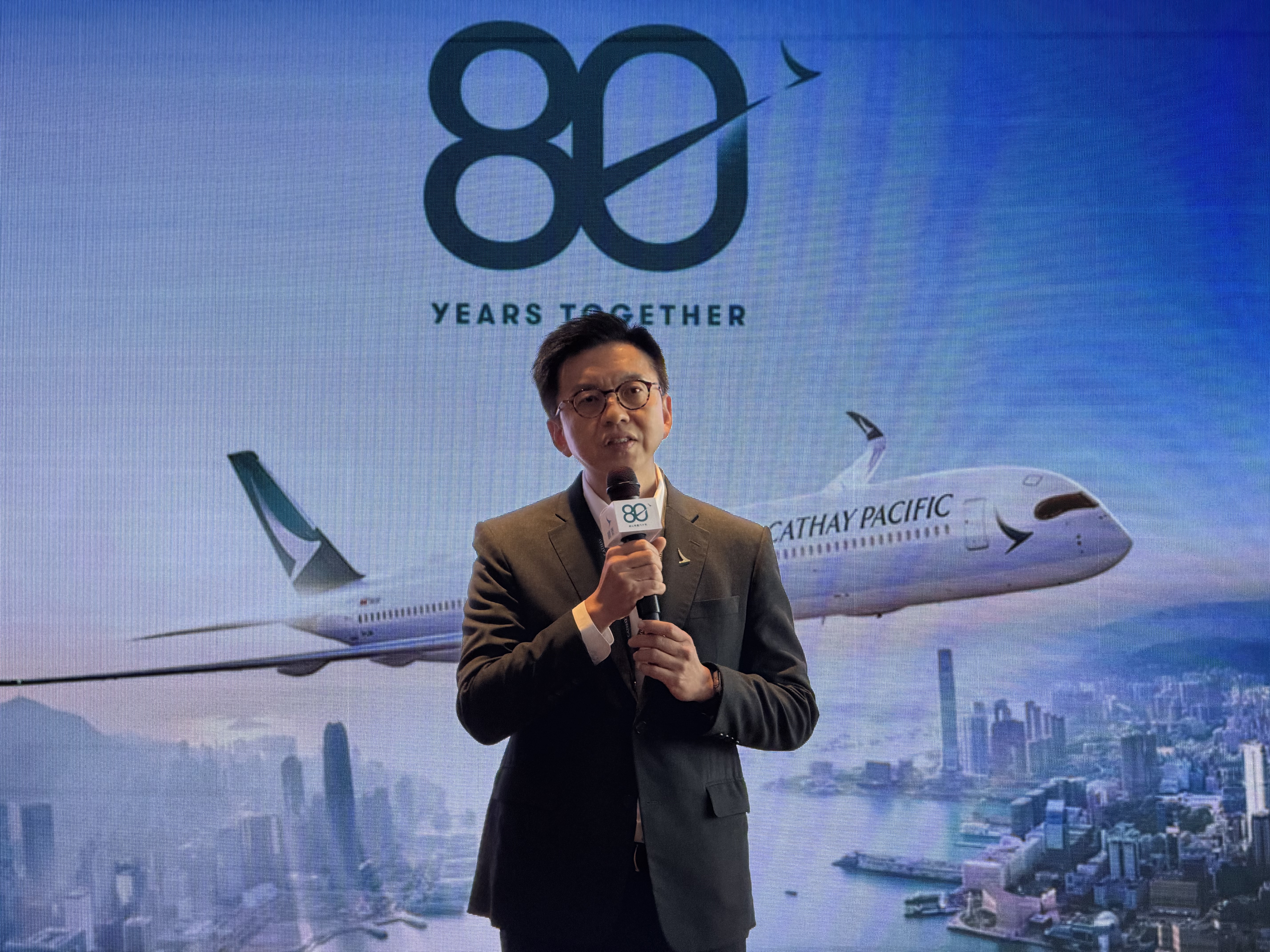 林紹波致辭時指出,國泰成立於1946年,從一家小型航空公司發展至今,成為代表香港的知名品牌,國泰見證香港過往多年的成長和變遷,亦非常支持香港國際航空樞紐的發展。他介紹,為慶祝成立80周年,國泰將開展一系列慶祝活動,包括推出兩架塗有綠白條紋,有「生白菜三明治」之稱的復古飛機,以及約1000位前線員工亦會穿上復古制服。他表示,展望未來,國泰將投入超1000億港元,以提升顧客體驗,令國泰成為顧客最喜歡的中國品牌;並支持香港國際航空樞紐發展,發揮「立足香港,聯通世界」的獨特地位,以聯結中國及全世界。