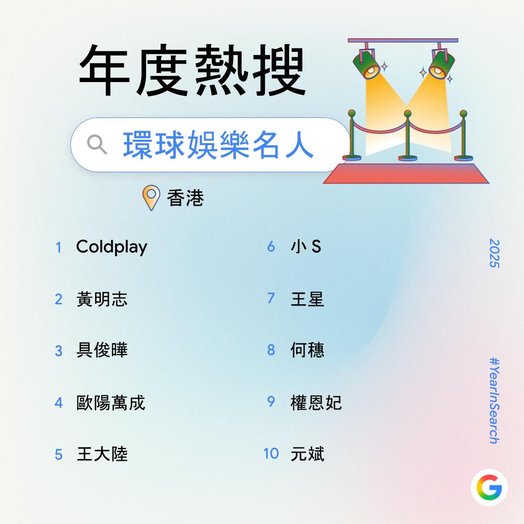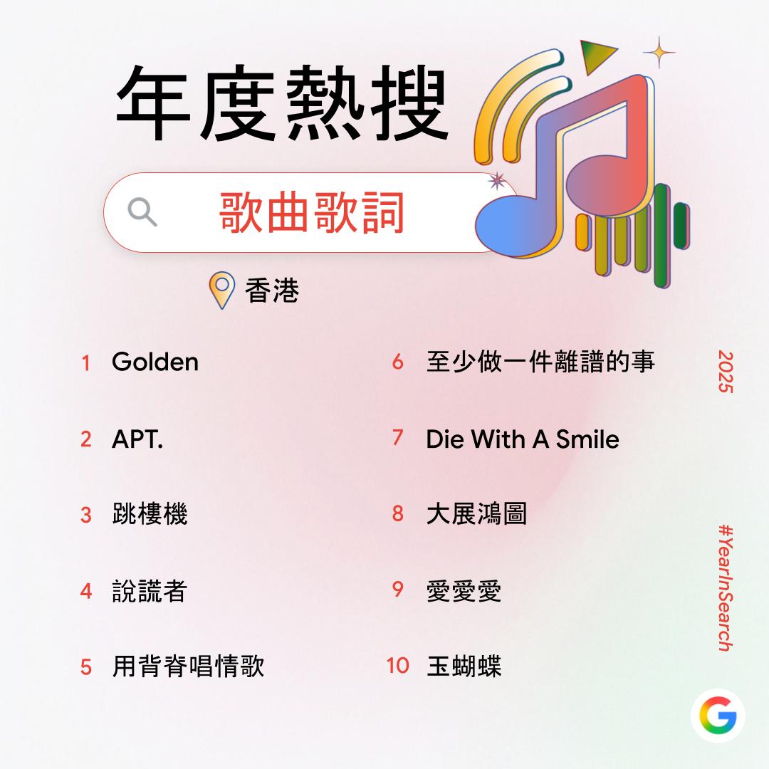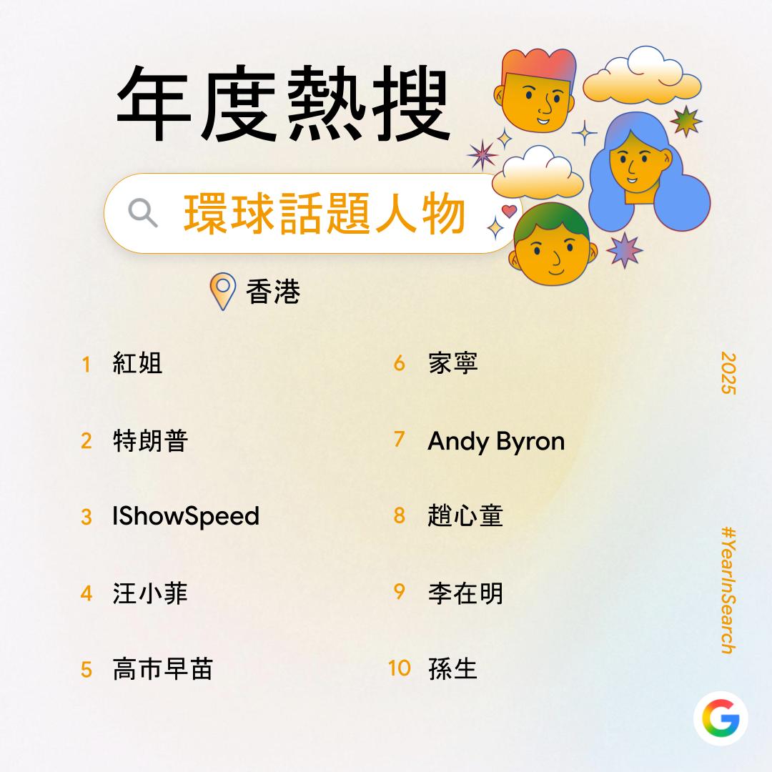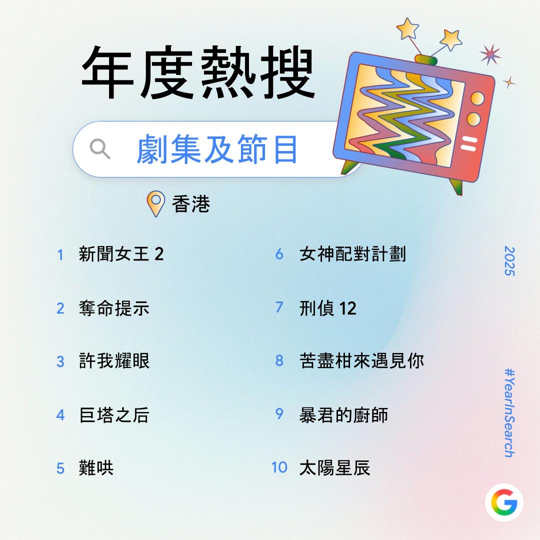 大公文匯全媒體報道,過去一年,你在網上搜索了什麼?Google香港今日(6日)公布2025年度搜尋榜,彙整去年搜尋量飆升得最高的關鍵字,透過數據回顧2025年港人關注的話題。搜尋榜共有14份榜單,涵蓋詞彙、時事、人物、娛樂及休閒範疇。