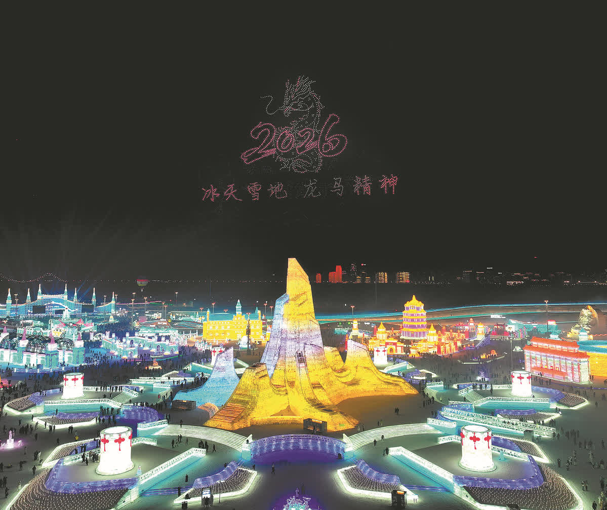 The banks of the Songhua River in Harbin, Heilongjiang province, were alive on Monday evening with the sound of fireworks and dazzling lights as the 42nd Harbin International Ice and Snow Festival kicked off.