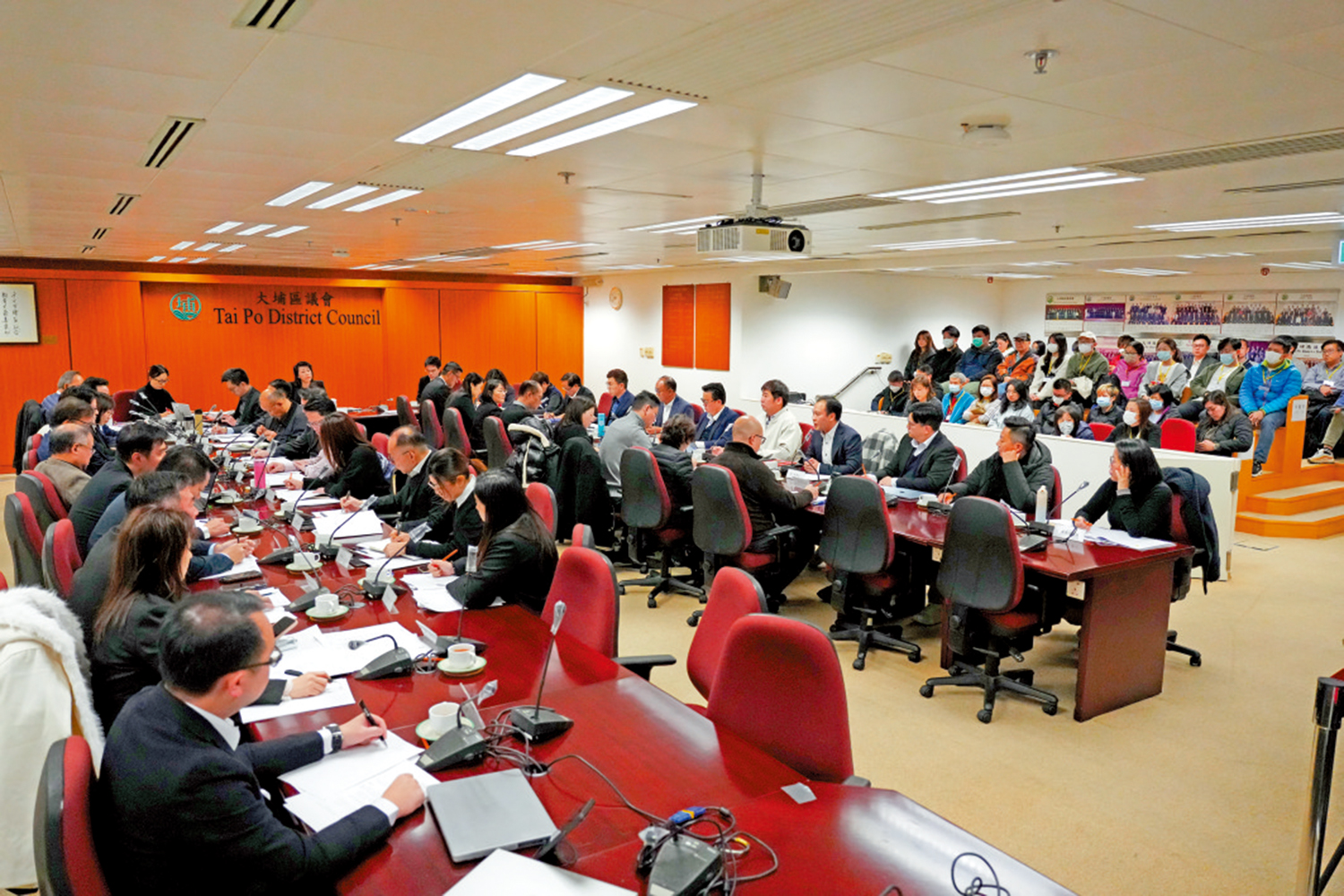 大埔區議會會議開始前,全體肅立默哀一分鐘,哀悼宏福苑火災遇難者。過半數區議員發言表達意見,之後由房屋署、運輸署、社會福利署、警務處等政府部門代表回應。