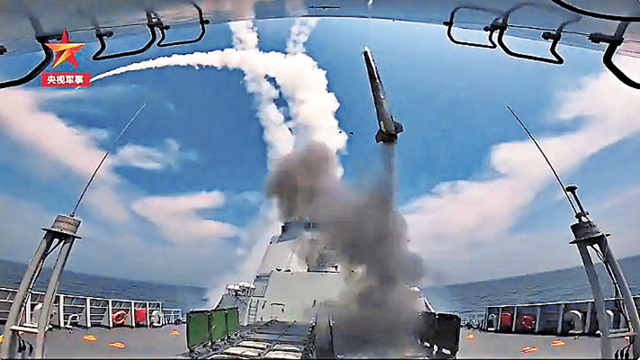 此次訓練並非「擺拍秀肌肉」,而是包含了一系列高難度課目。畫面顯示,訓練內容既包括編隊協同機動、艦炮對海對岸精確打擊、橫向補給等常規科目,也有在複雜電磁環境下導彈、干擾彈試射等實戰演練。訓練課目全方位、高強度地錘煉了編隊的協同作戰能力與體系攻防水平。特別是在信號被干擾、通信鏈路受壓制的情況下,如何保持編隊作戰效能成為訓練關鍵。
