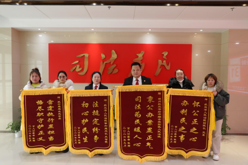 「沒想到這麼快就拿到工資了,咱法院真是為老百姓辦實事!」時值隆冬,鄭州航空港區法院訴訟服務大廳卻如春天般暖意融融。90餘名農民工拿到被欠付近兩年的260餘萬元(人民幣,下同)勞動報酬後,特意推選代表將四面寫有「秉公辦案顯正氣 司法為民暖人心」等字樣的錦旗送到法官手中,用質朴的方式表達感激之情。