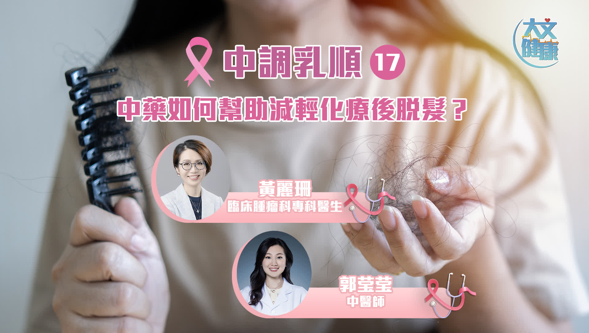 臨床上,註冊中醫師會依照體質對症處方中藥,在病人康復期間促進毛囊的恢復。中醫認為頭髮的生長跟肝腎相關,故此重視肝腎的調護。2019 年發表的一份內地雙盲隨機的臨床研究顯示,93 位乳腺癌患者因化療引致不同程度的脫髮後,治療組使用中成藥「消癌平」後,84.8% 中度脫髮的患者,經過 5個月後有明顯改善。不過要注意,中成藥及坊間保健產品種類繁多,病人體質各異,使用前應向註冊中醫師諮詢。