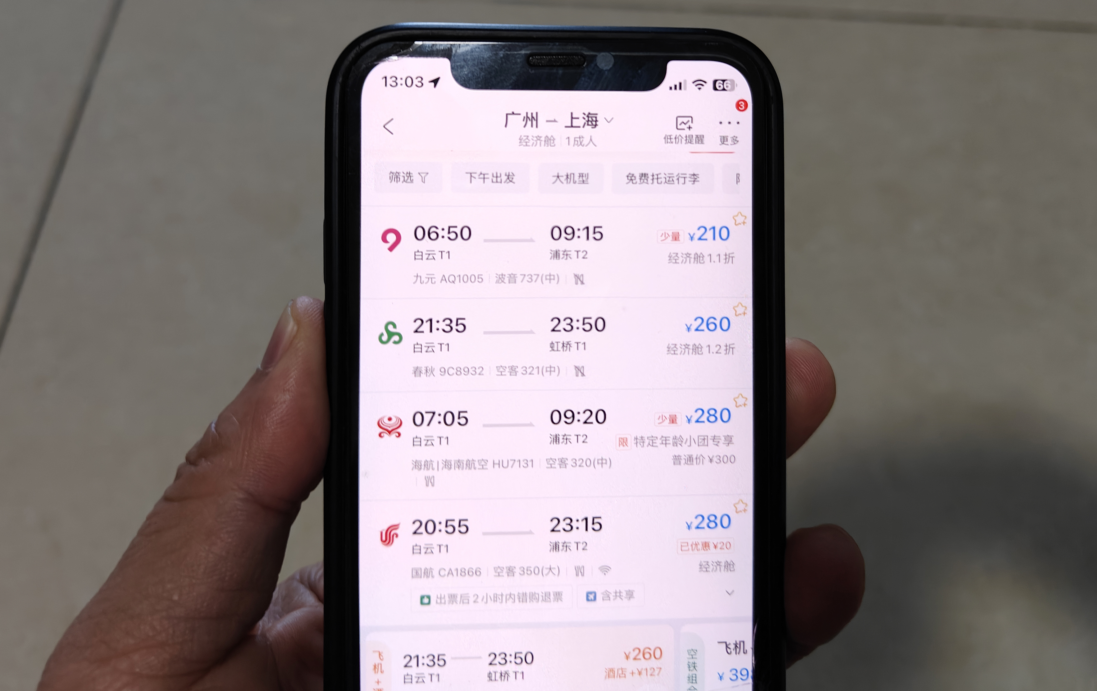(大公文匯全媒體記者 方俊明)內地機票價格在元旦假期後迎來「大跳水」。記者8日從相關線上平台及航空公司獲悉,內地熱門旅遊城市單程機票最低僅需1折左右。例如1月9日到11日,廣州飛上海、北京的機票價低至1到1.5折,最低票價以210到409元(人民幣,下同)左右即可成行。「這是元旦假期之後錯峰出遊『撿漏』好時機,對於港澳居民北上出行也是一大利好。」南方航空有關人士表示,機票「低價窗口期」預計持續至2月初。