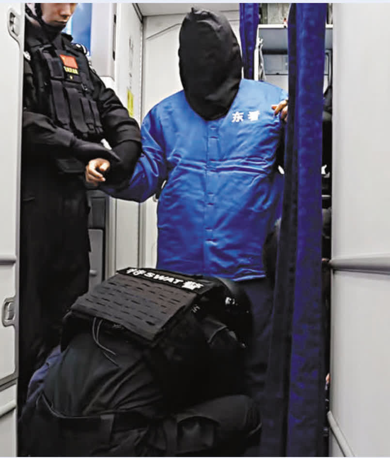 公安部刑偵局8日發布了陳志被從柬埔寨押解回國的現場畫面,香港文匯報記者看到,身着藍色囚服的陳志被北京特警藍劍突擊隊隊員從飛機上押解下來,陳志身上戴上械具,衣服上還有明顯的「東看」(即某地看守所)標識。公安部的通報稱,經查,陳志犯罪集團涉嫌開設賭場、詐騙、非法經營、掩飾隱瞞犯罪所得等多項犯罪。目前,陳志已被依法採取強制措施,相關案件正在進一步偵辦中。公安部有關負責人表示,近期將公開通緝團夥骨幹,並正告犯罪分子,認清形勢、懸崖勒馬,立即投案自首,爭取寬大處理。