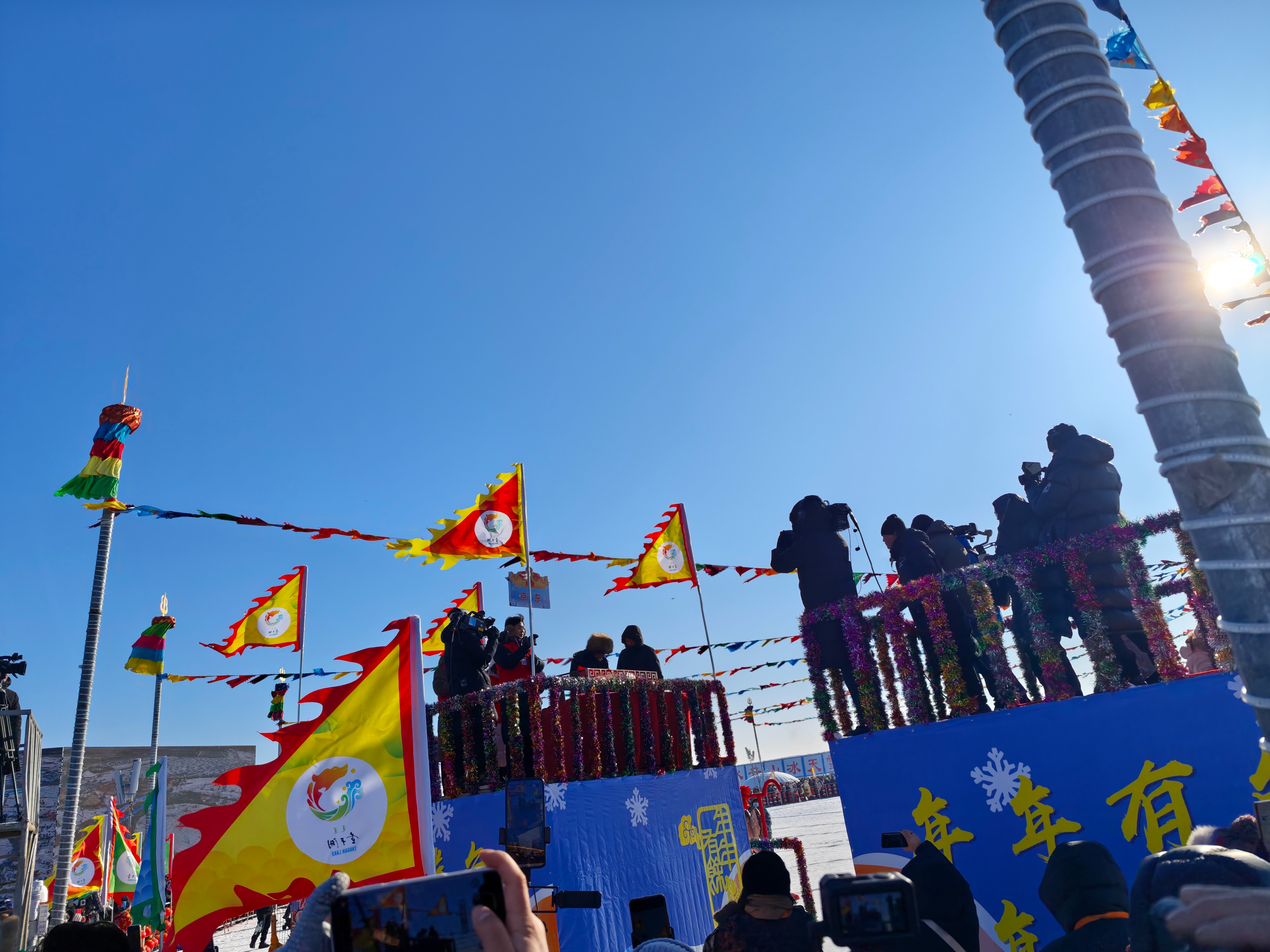 開幕式當日,查干湖捺缽廣場上鼓聲激越、琴韻悠揚。熱烈歡快的《冰湖琴舞》拉開演出序幕,原創歌曲《向北行》將開幕式推向高潮。隨後,傳統祭湖醒網儀式莊重上演,灑祭、博舞、誦詞、喝壯行酒……古老儀式歷久彌新,傳遞着對自然的敬畏與對豐收的祈願。與往年不同,今年的查干湖不只是一處觀禮之地,而是一本可以親手翻閱、身臨其章的「立體話本」,處處藏有驚喜。