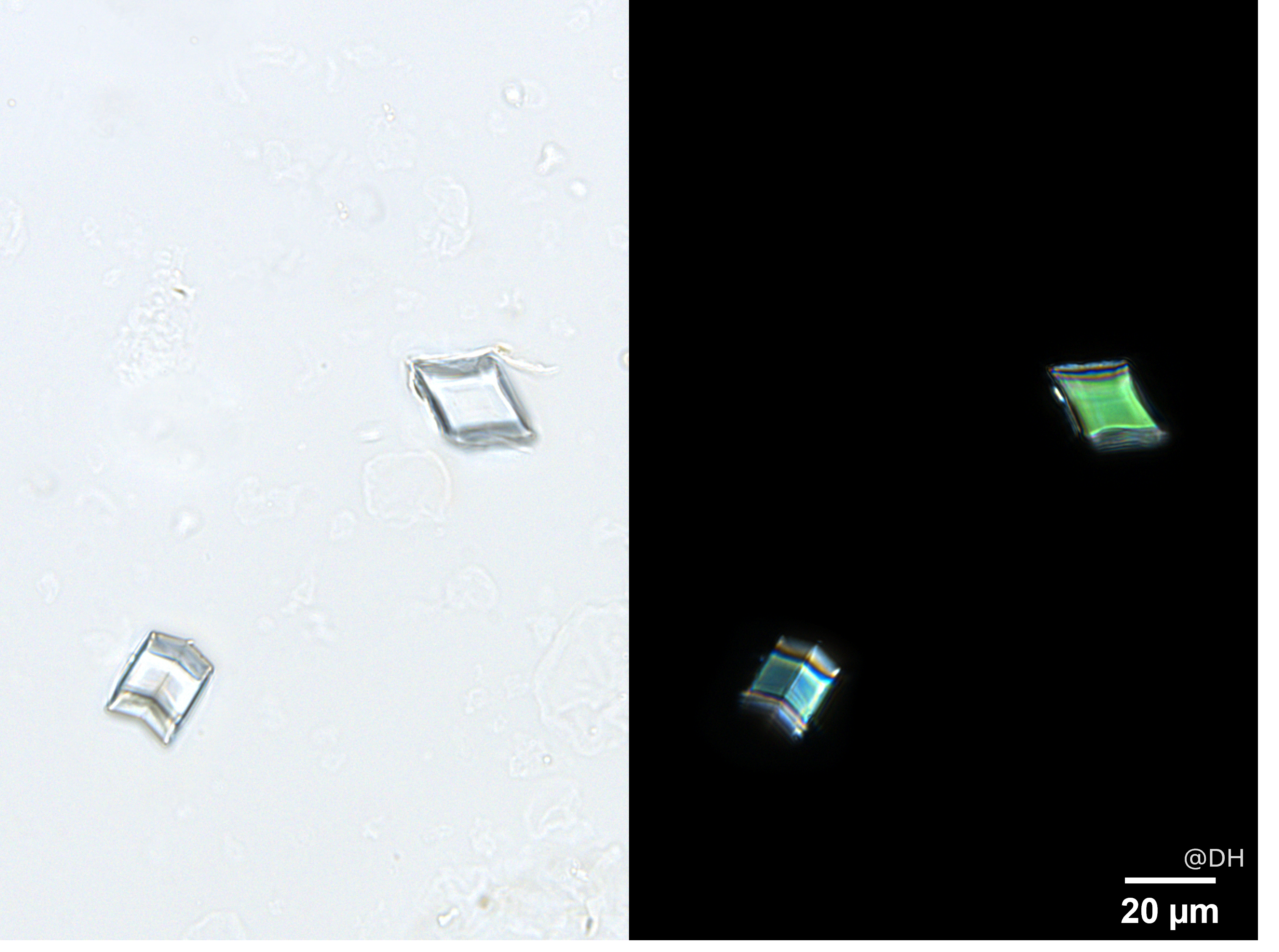 在顯微鏡下,五加皮及香加皮在特徵上的差異更為明顯,五加皮的粉末會有蓮座狀的草酸鈣簇晶,而香加皮則帶有呈菱形及方形的草酸鈣方晶。市民只需這簡易的方法,便能迅速而準確地鑒定正品。