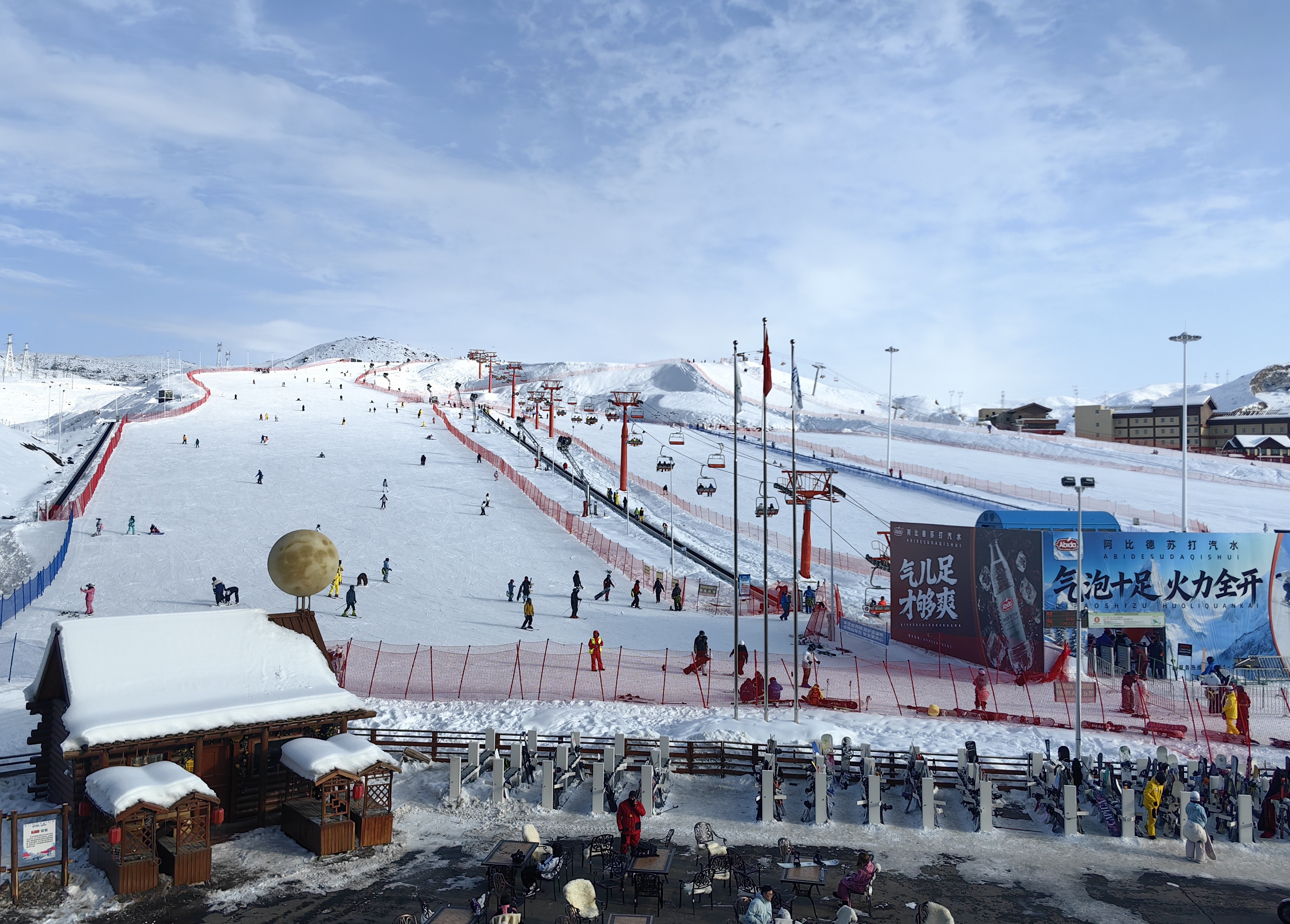 青格裏狼山滑雪場則是融合狼文化主題的性價比之選,擁有坡度39.9°的「狼王道」及39條多樣雪道,配備西北狼園互動體驗與5元直達公交,免費時段同將軍山滑雪場,適合家庭遊客與初學者。