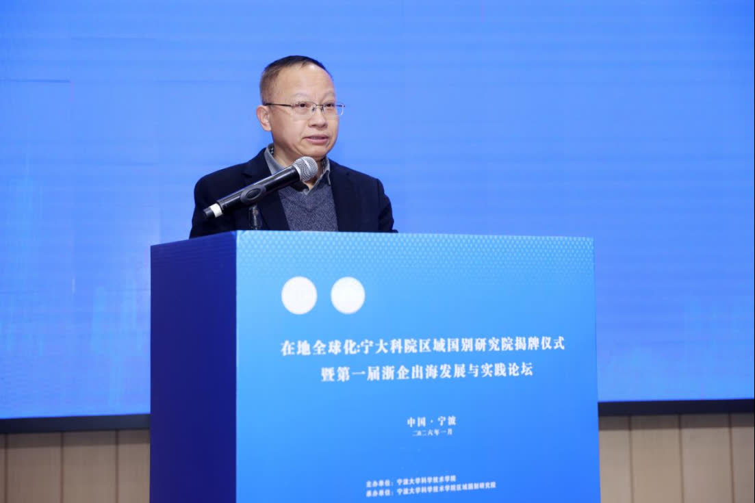 1月9日,「在地全球化:寧波大學科學技術學院區域國別研究院揭牌儀式暨第一屆浙企出海發展與實踐論壇」舉辦。本次論壇由寧波大學科學技術學院主辦,匯聚了來自學術界、企業界及海外機構的百餘名代表,共同探討區域國別學如何賦能浙企高質量出海。
