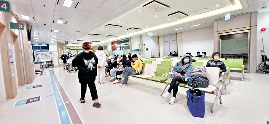 香港文匯報記者前日(10日)晚上11時,走訪伊利沙伯醫院、廣華醫院及明愛醫院,發現候診人數明顯較之前減少,求診市民大多坐在椅子上等候,過往逼爆候診大堂的情況不復再,當中不少病人的病情被界定為緊急、次緊急及非緊急類別,需繳付400元。
