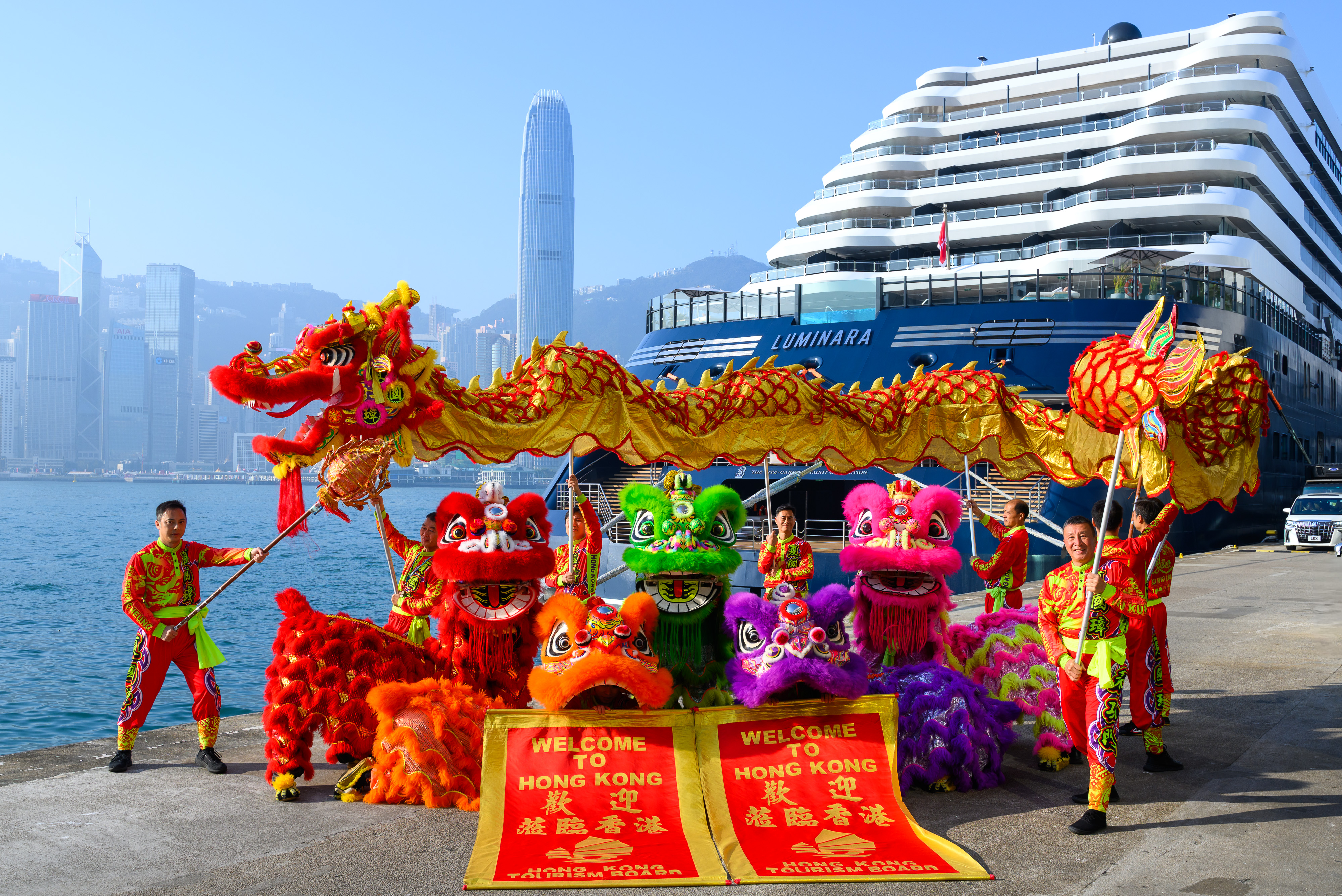 Luminara自去年12月於新加坡啟航展開亞太地區航程後首次抵港,今日清晨駛入維多利亞港,停靠於尖沙咀海運碼頭,旅發局安排沿途射水禮及醒獅金龍配以熱鬧鑼鼓表演,慶祝郵輪及旅客訪港。郵輪公司亦在船上舉辦儀式及歡迎午宴,文化體育及旅遊局局長羅淑佩、旅遊事務專員張馮泳萍、旅發局總幹事劉鎮漢及The Ritz-Carlton Yacht Collection代表等共同出席,慶祝郵輪正式抵港。