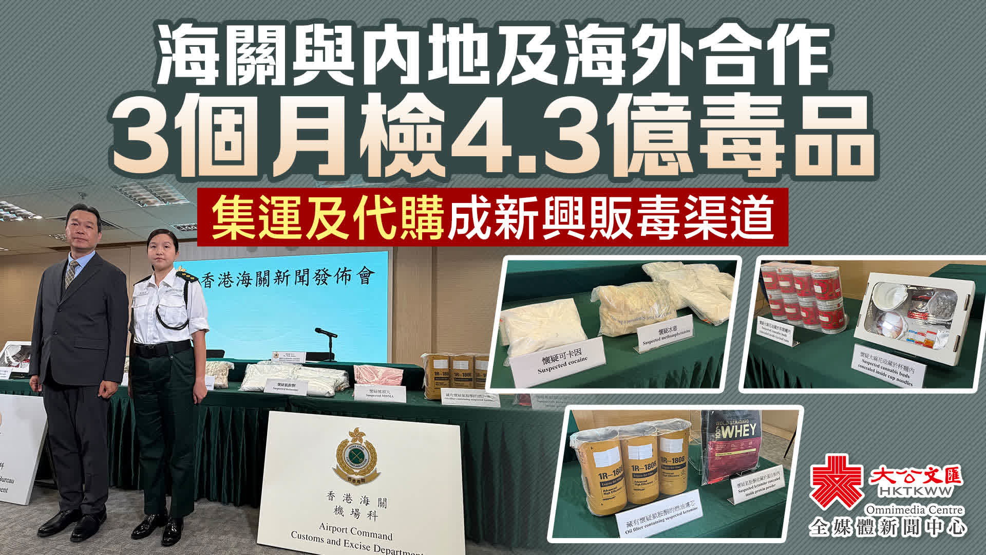(大公文匯全媒體 記者 劉妍伶)香港海關於2025年10月至12月期間,在香港國際機場與內地及海外執法機構合作,進行大型緝毒行動,打擊不法分子利用航空渠道販毒。今日(14日),香港海關在香港國際機場舉行記者會,講述國際聯合行動詳情及總結成果。