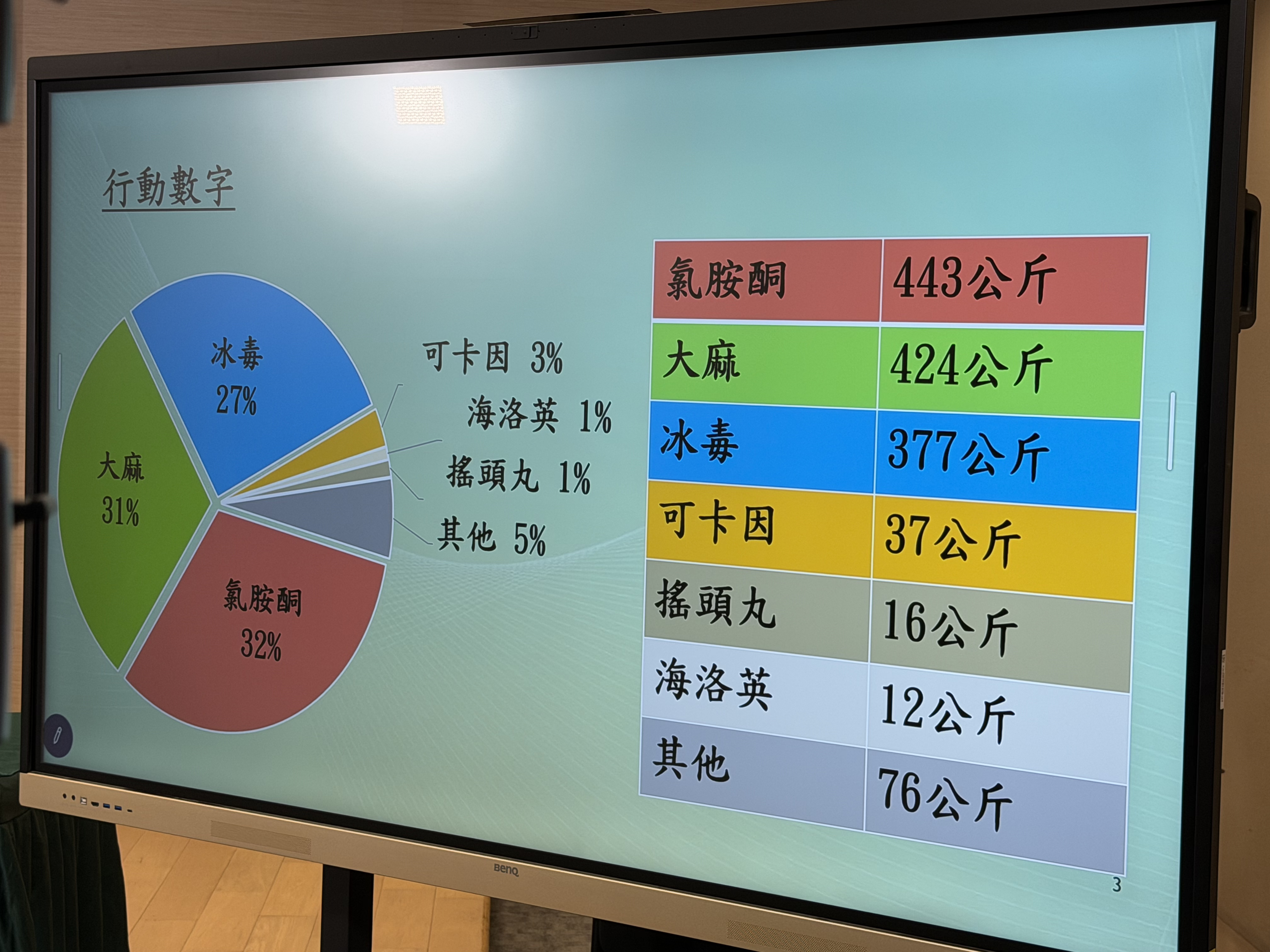 海關毒品調查科機場調查課監督黃雅綸指,不法分子利用年末旅遊高峰期、長假期客流較多,以空運方式向香港運送毒品。經過3個月聯合行動,成功偵破183宗案件,其中經客運40宗,貨運則143宗。聯合行動中,海關共檢獲約1.4噸懷疑毒品,其中懷疑氯胺酮、懷疑大麻及懷疑冰毒位列前三,分別檢獲443公斤、424公斤、及377公斤,市值約4.31億港元。行動共拘捕62人,年齡介乎19歲至77歲,一半為內地及香港本地人士,其餘均為不同國籍的外籍人士。