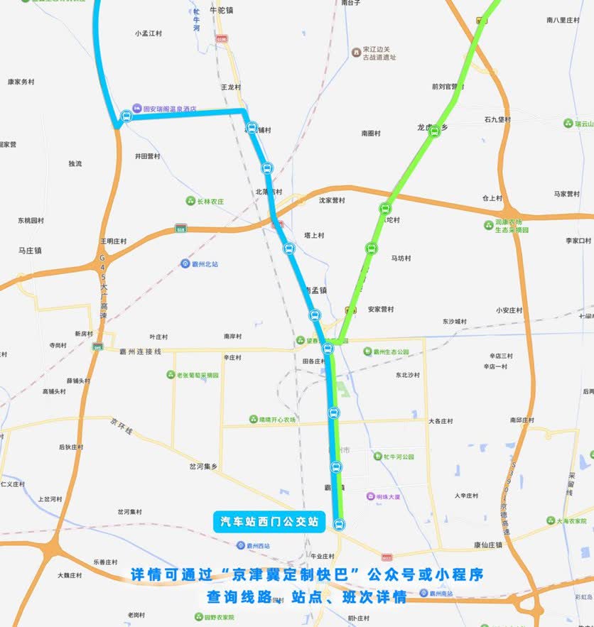 記者了解到到,線路規劃精準覆蓋兩地關鍵交通樞紐與人口密集區域,共設置兩條主線,全長約90公里。線路一為霸州汽車站西門公交站往返天宮院地鐵站、豐台科技園地鐵站、新發地客運站,進京發班時間05:40、06:20,出京發班時間17:50、18:20;線路二為霸州汽車站西門公交站往返宋家莊地鐵站、新發地客運站,進京發班時間06:00,出京發班時間18:00。全線在北京端設新發地客運站、豐台科技園地鐵站等4個上下客站點,確保與城市軌道交通的近距離銜接;霸州端覆蓋李少春大劇院、溫泉小區、霸州一中、南孟等多個站點,實現「就近上車、便捷換乘」的出行體驗。