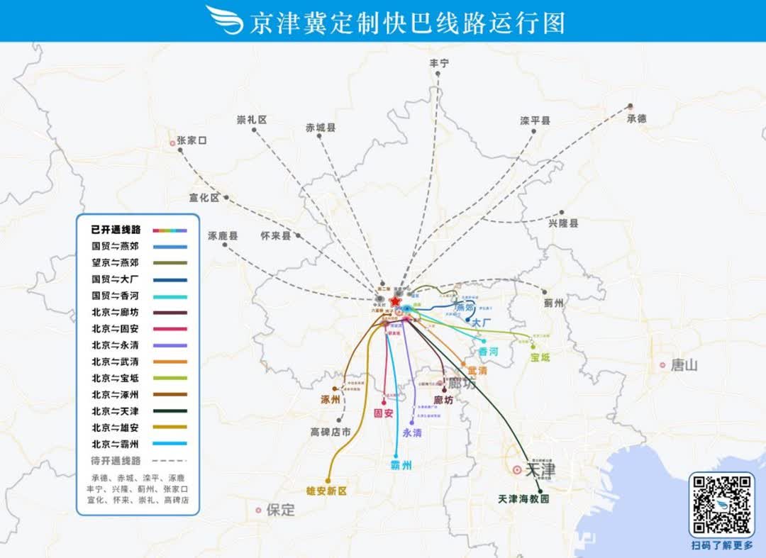 京津冀定製快巴已開通12條主線及50餘條支線