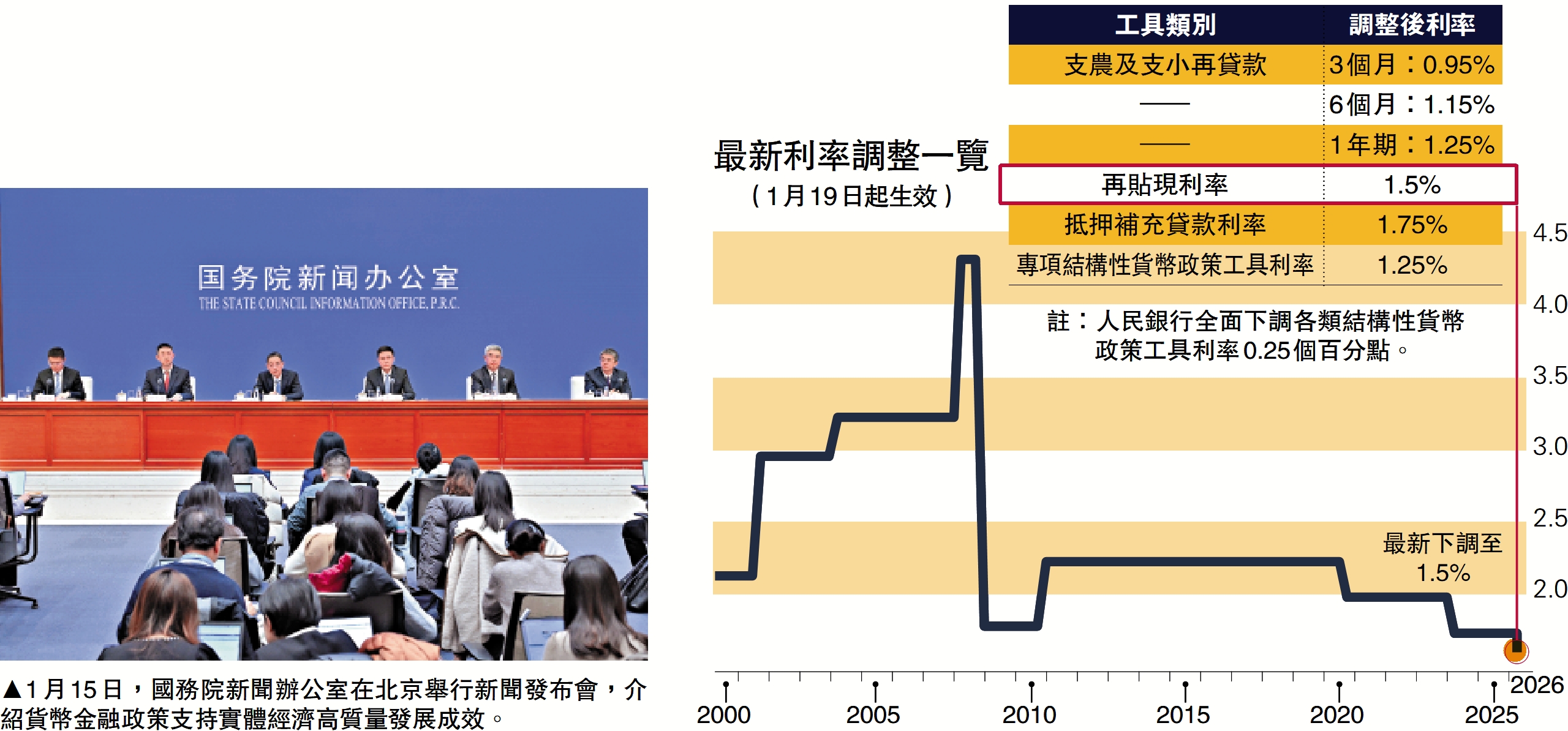 (大公報 記者 李暢、倪巍晨)中國人民銀行推出「組合拳」穩經濟增長,其中包括減息0.25厘、設1萬億再融資支持中小民企、增科創再貸款額度等8項措施。