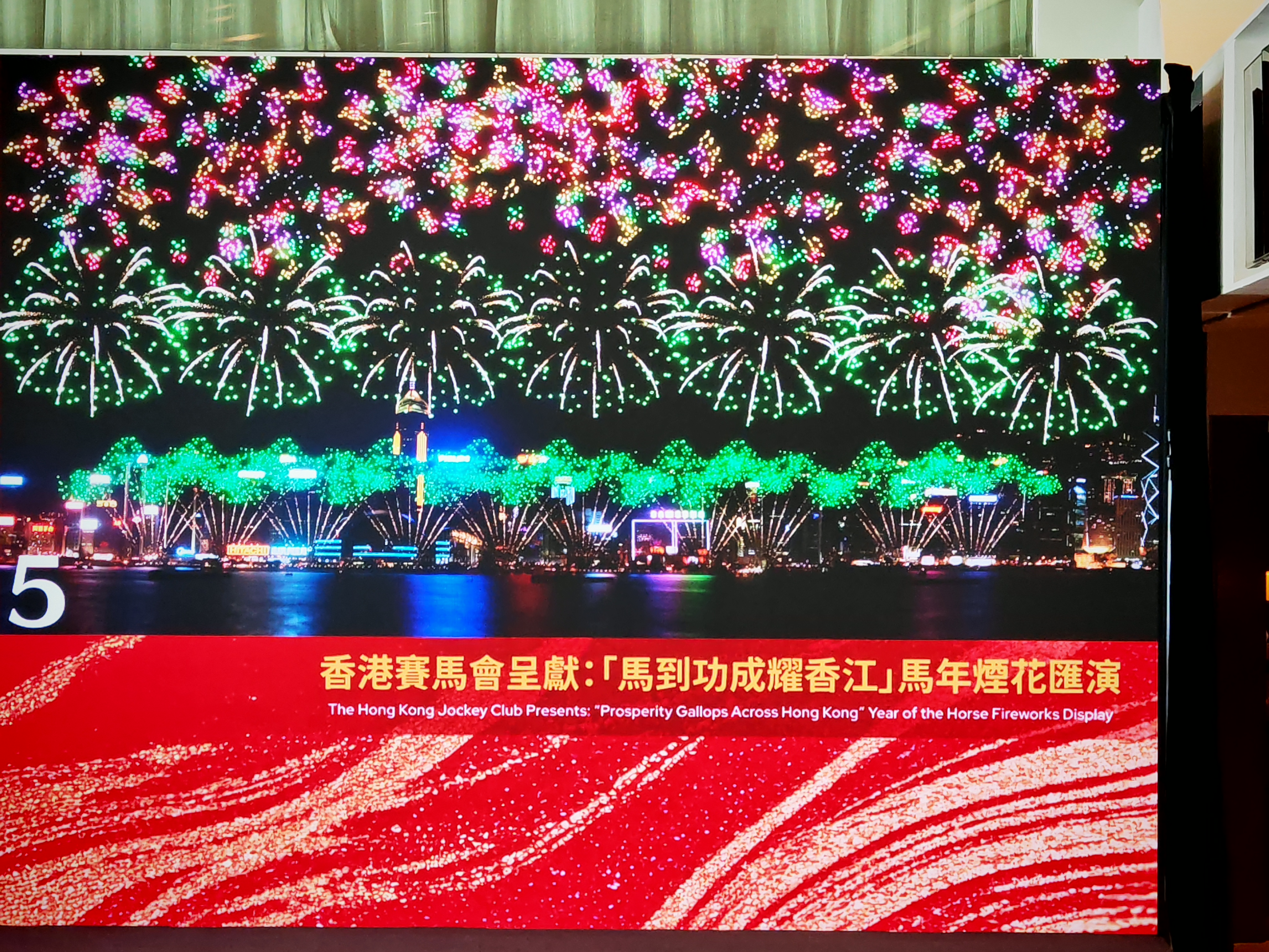 在這一幕,維港化身成為馬年慶典的空中舞池,「七彩變幻球」與多重圓形禮花彈如水晶球般在高空旋轉躍動,帶動熱鬧歡騰的節奏。絢麗光影好像追逐夢奔跑的駿馬,陪伴市民在新一年昂首向前、勇往直前,為理想不斷衝刺。