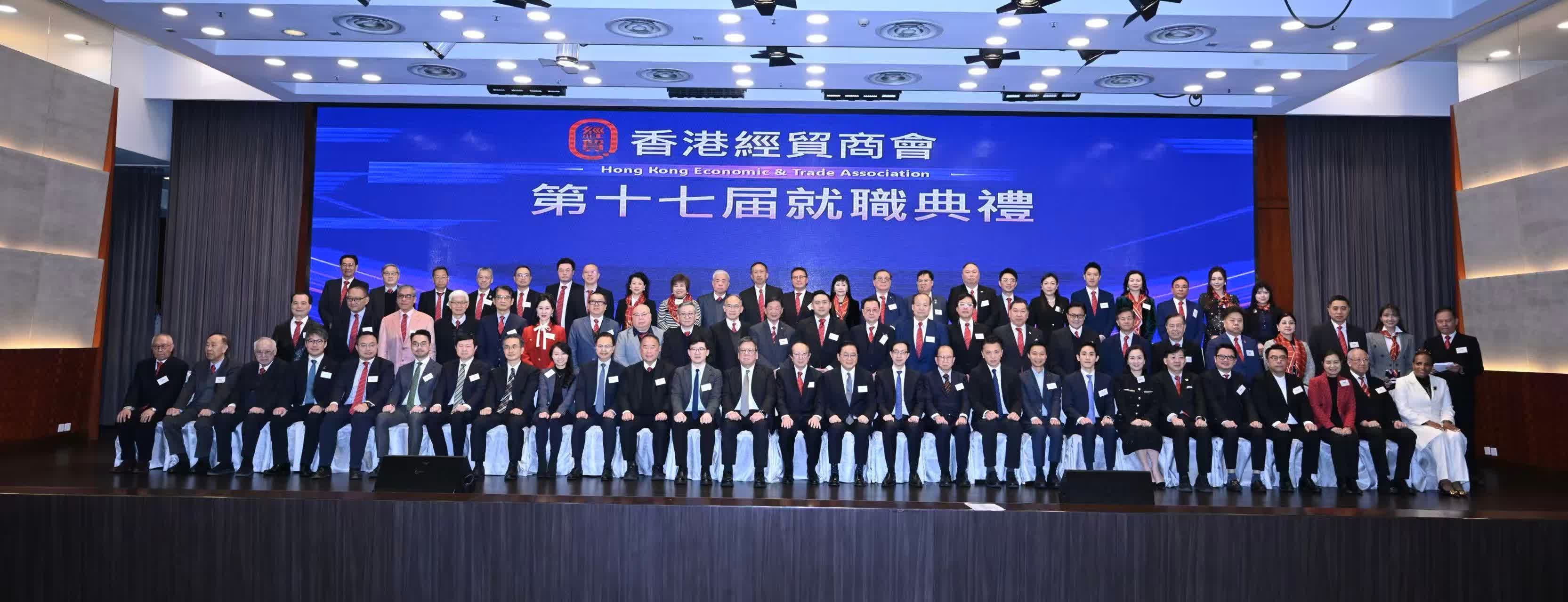 1月15日,香港經貿商會假座尖沙咀龍堡國際酒店舉行第十七屆理事會就職典禮。鄧錦添榮膺任新一屆會長,商務及經濟發展局局長丘應樺擔任主禮嘉賓。典禮現場筵開近40席,約500位政商界領袖、社會賢達及會員代表齊聚一堂,共同見證新一屆理事會履新的重要時刻。