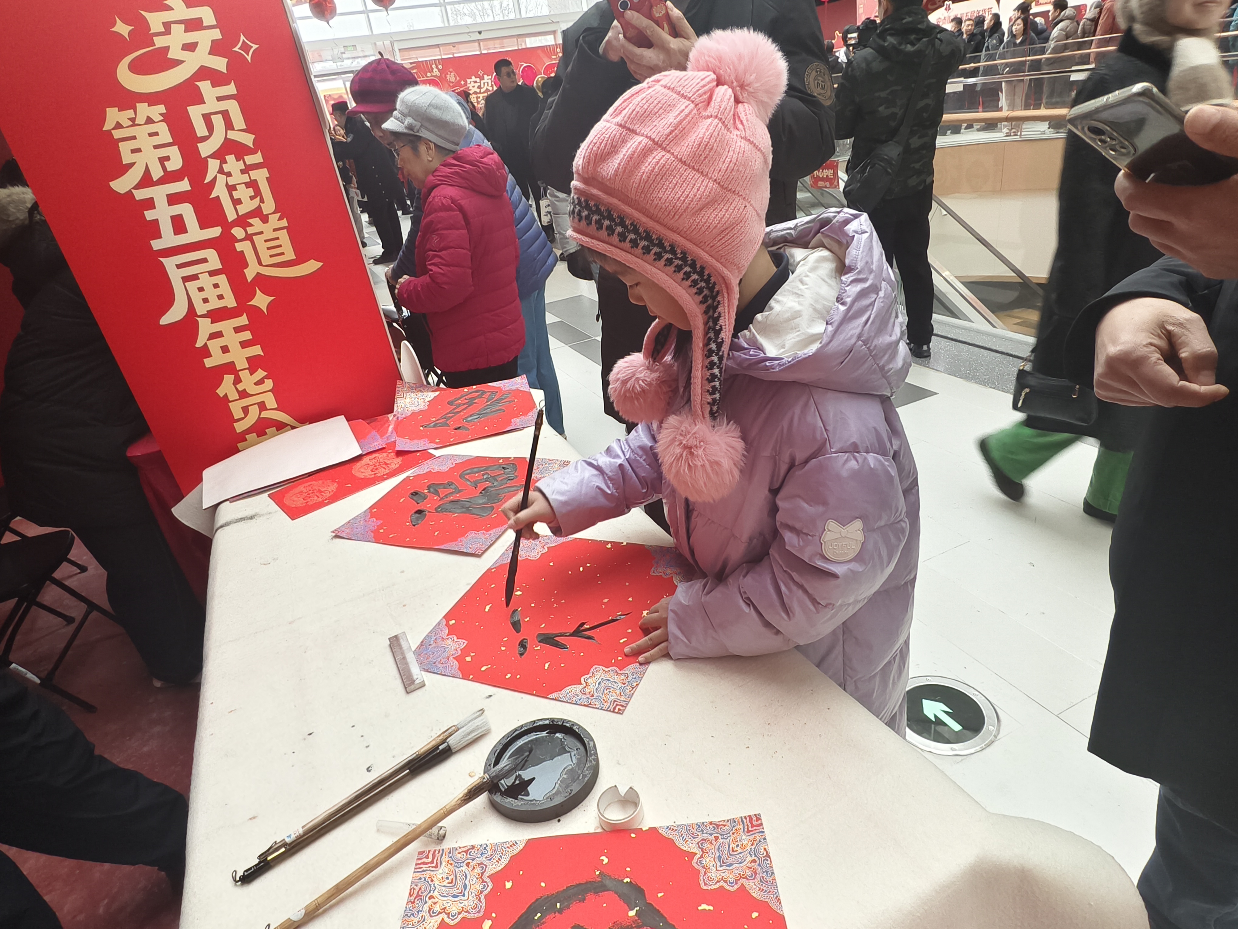 (大公文匯網記者馬曉芳)贛州客家美食、內蒙牛肉乾、貴州酸湯、老北京點心、非遺糖畫……喜慶鑼聲中,北京安貞第五屆年貨節17日啟幕,來自浙江、福建、貴州等地的地道地方特產琳琅滿目,書法愛好者現場揮毫,一幅幅春聯與各式年貨帶來濃濃的新春佳節氣息。