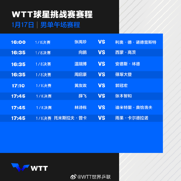 大公文匯全媒體報道,1月17日,WTT球星挑戰賽多哈站男單1/8決賽,國乒男單4人晉級,2人止步,其中林詩棟爆冷1比3迪米特里·奧恰洛夫,止步16強。